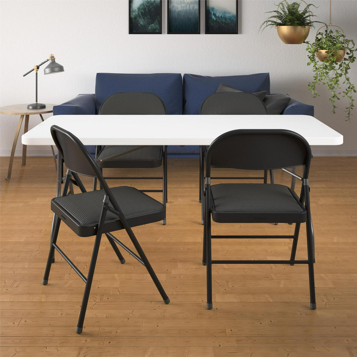 Mainstays Fabric Padded Folding Chair, Black, 4 Count
