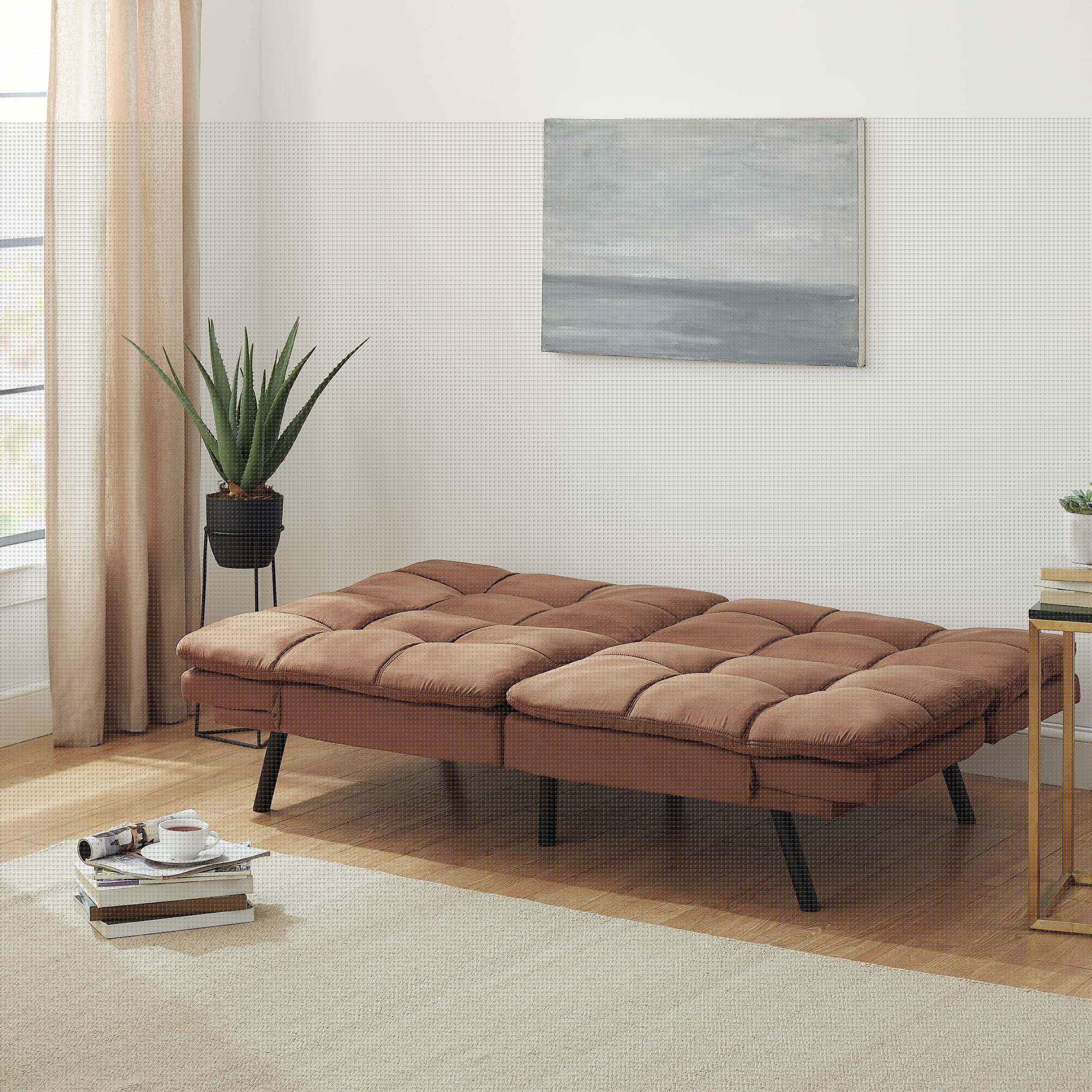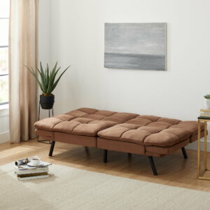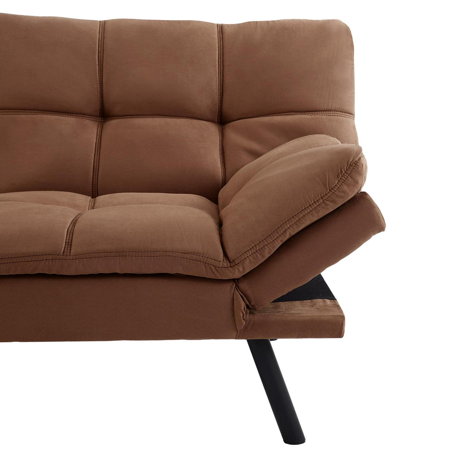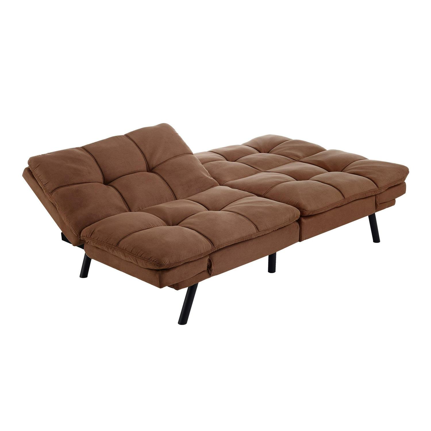 Mainstays Memory Foam Futon with Adjustable Armrests , Camel Faux Suede Fabric for Adults