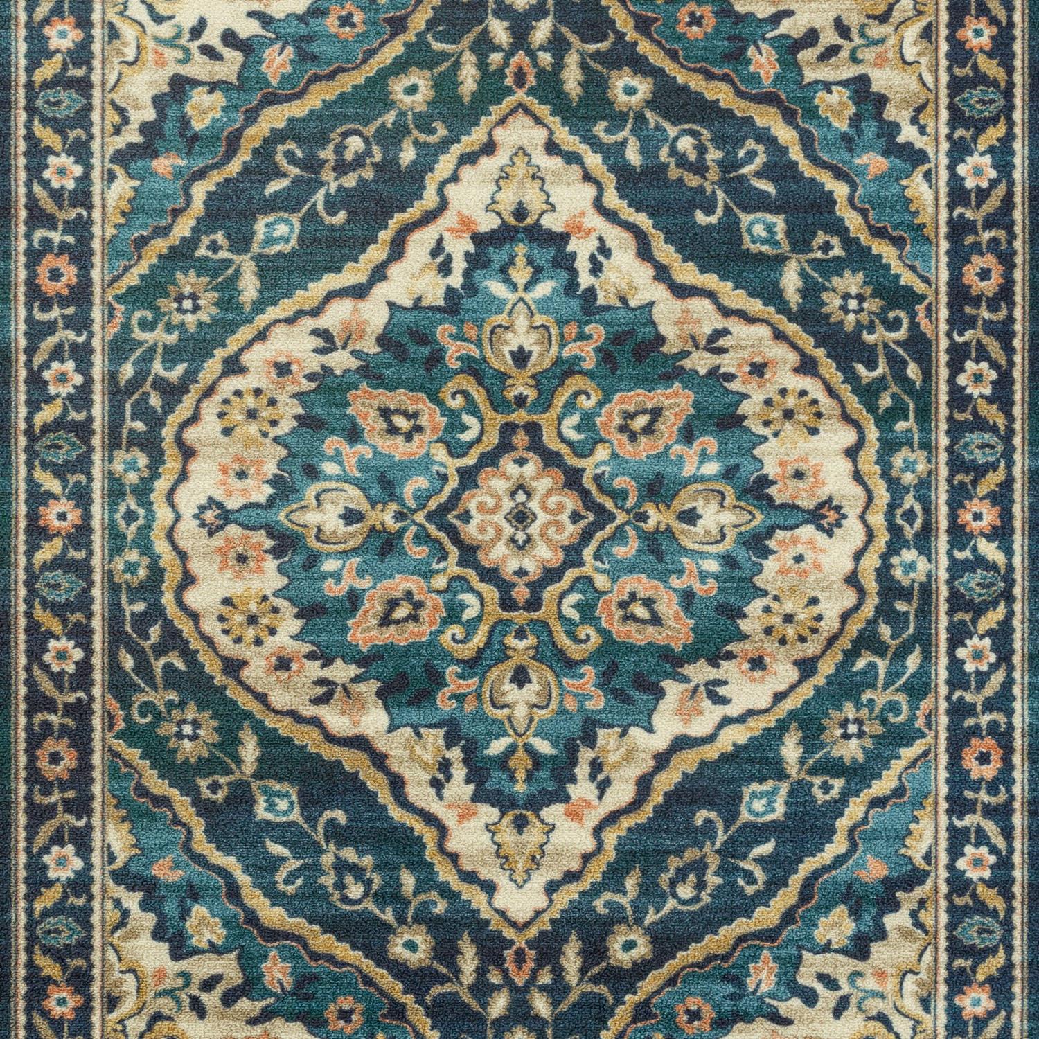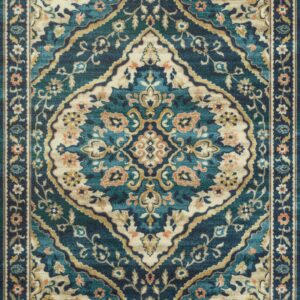 Mainstays Traditional Persian Teal Blue Print Indoor Area Rug, 7′ x 10′