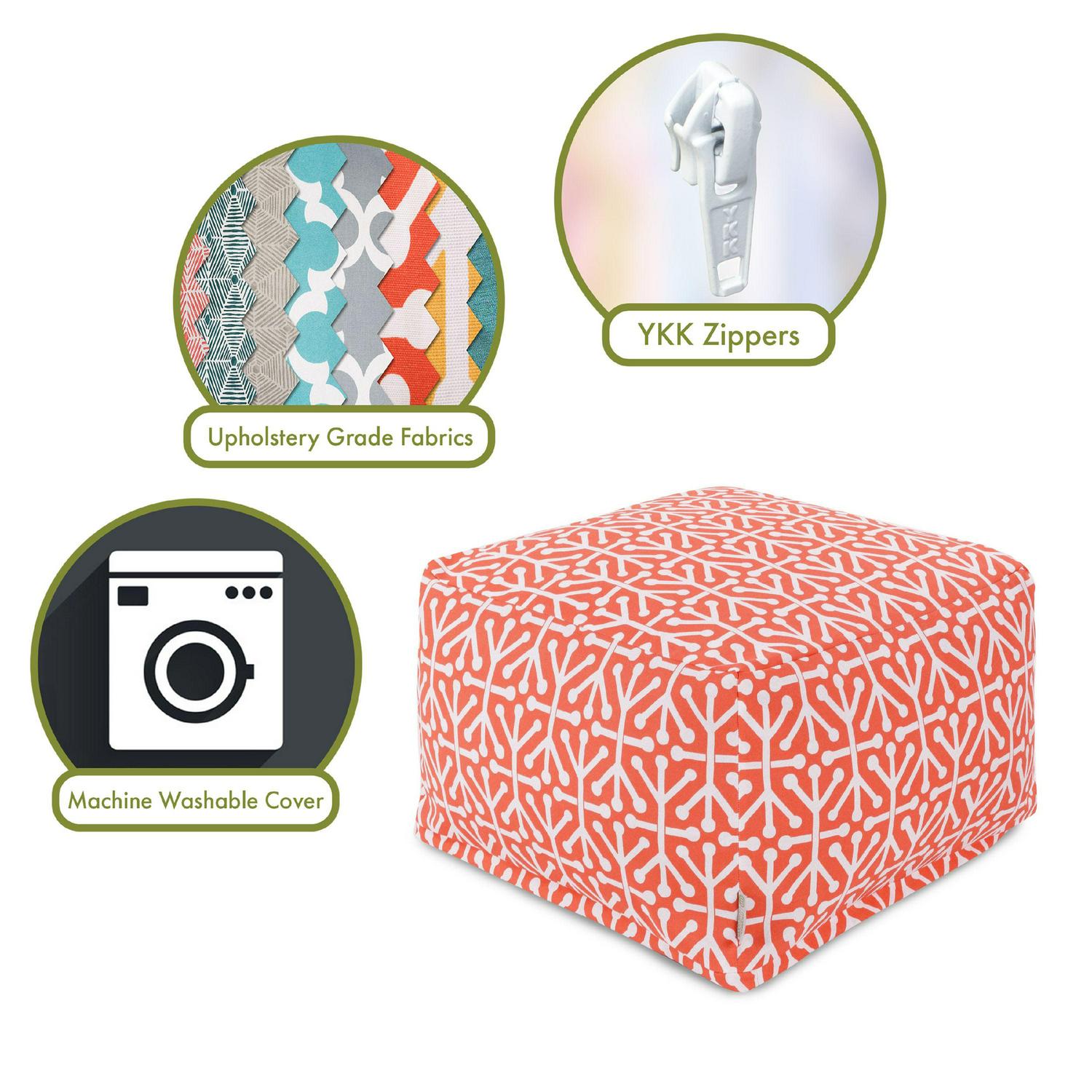 Create the perfect vibe for your outdoor or indoor space with Majestic Home Goods Indoor/Outdoor Ottomans Collection. These pouf ottoman can be used as a foot stool, side table or as extra seating in your home or backyard. The ottoman inserts are environmentally friendly by using up to 50-percent recycled polystyrene beads. The removable zippered slipcovers are woven from Outdoor treated polyester with up to 1000 hours of U.V. protection plus water and stain resistance.
