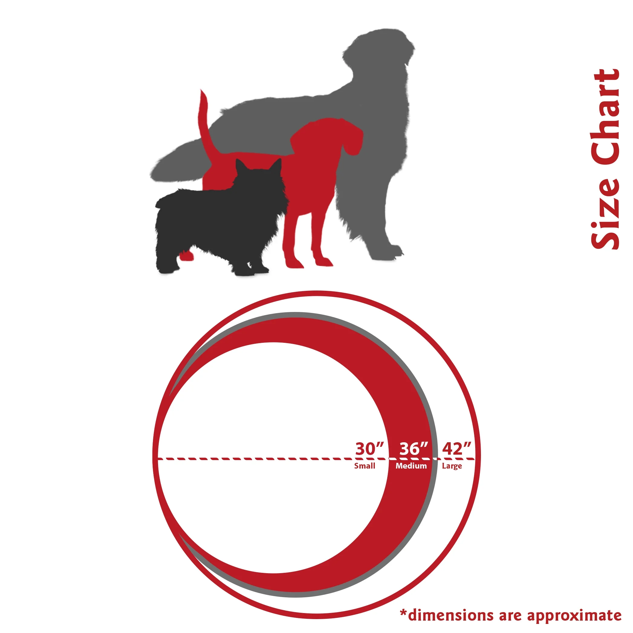 Majestic Pet Treated Polyester Collection Round Dog Bed Features: For indoor and outdoor use Zippered slipcover for easy removal Woven from durable outdoor treated polyester 1000 hours of U.V. protection Water and stain Resistant Water-Resistant 300/600 Denier Base Stuffed with premium high loft polyester fiber fill Machine Washable Slipcover Spot Clean Insert Bed Material: Slipcover: Treated Polyester Filling: Premium high loft polyester fiber Base: Water-Resistant 300/600 Denier fabric Dimensions: Size Small (30″ W x 30″ D x 4″ H) Size Medium (36″ W x 36″ D x 5″ H) Size Large (42″ W x 42″ D x 5″ H) All dimensions are approximate