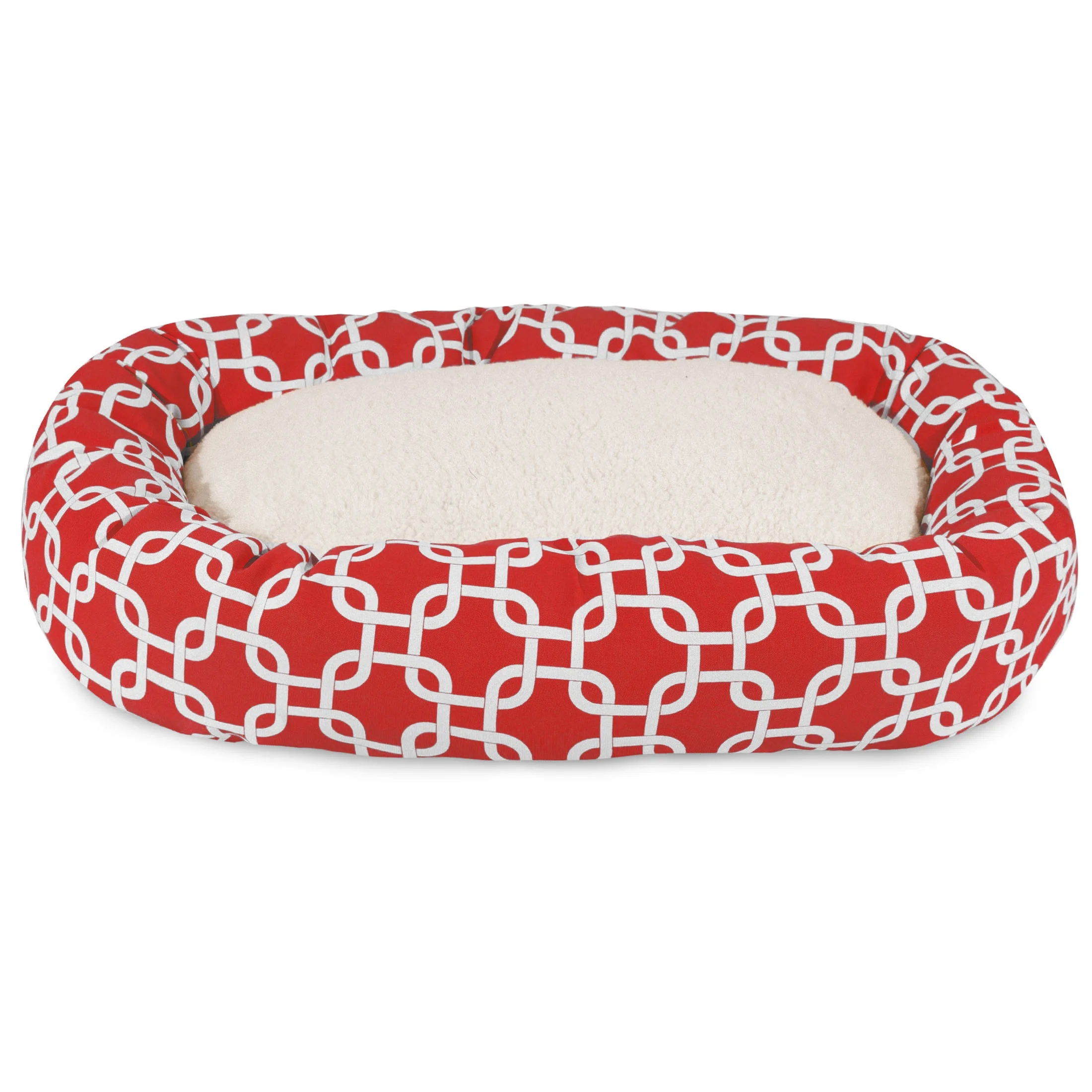 Majestic Pet Sherpa Links Bagel Pet Bed for Dogs, Calming Dog Bed Washable, Large, Red