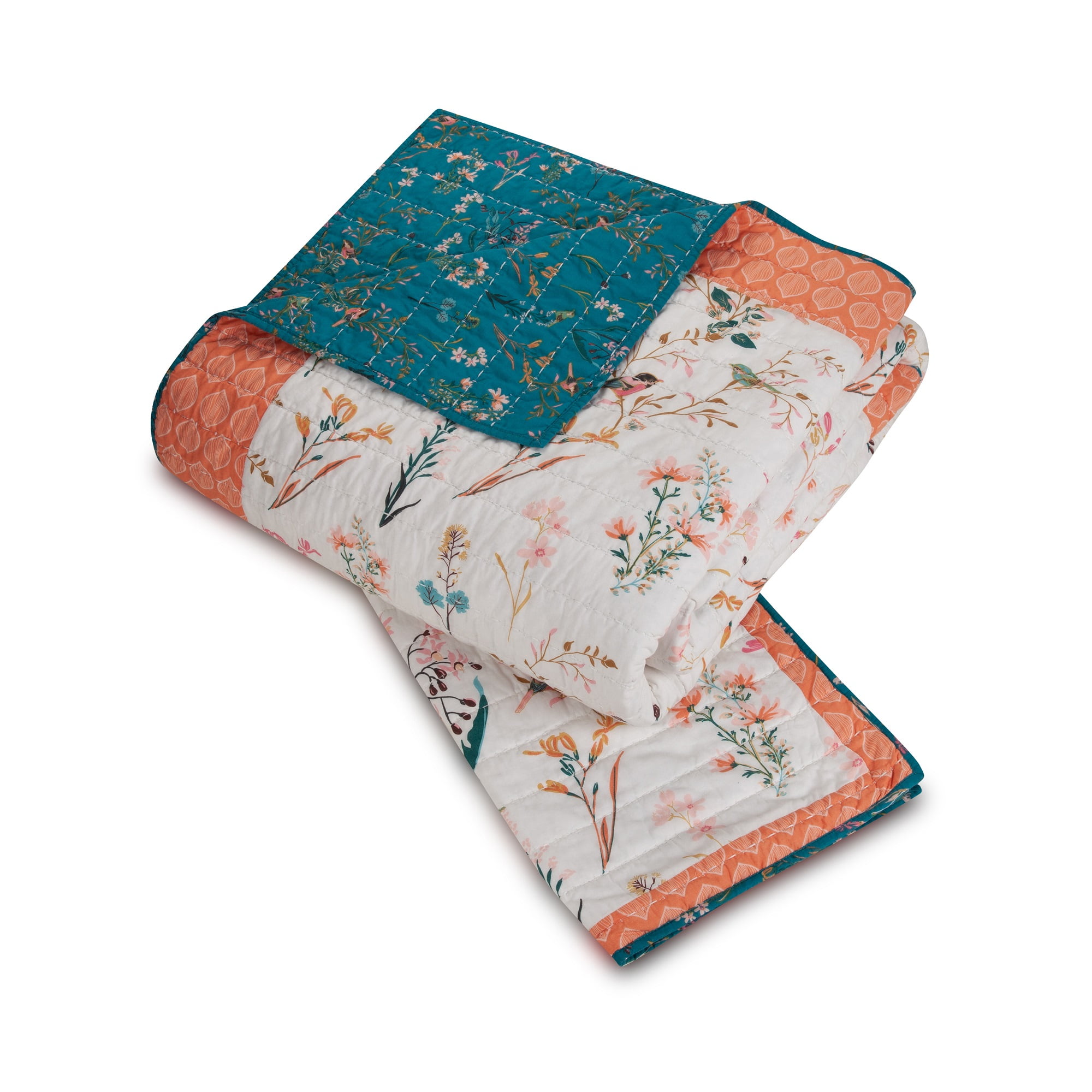 English Garden is a delicate floral pattern inspired by Teresa’s local botanical garden in Berkeley Hills, California. It’s a nod to vintage gardens, infused with a modern color palette and soothing energy. This 100% cotton quilt set has a gorgeous coral border and reverses for a needed shift in mood. Quilt set includes 1 quilt and 2 shams. Available in Full Queen and King. Imported China.