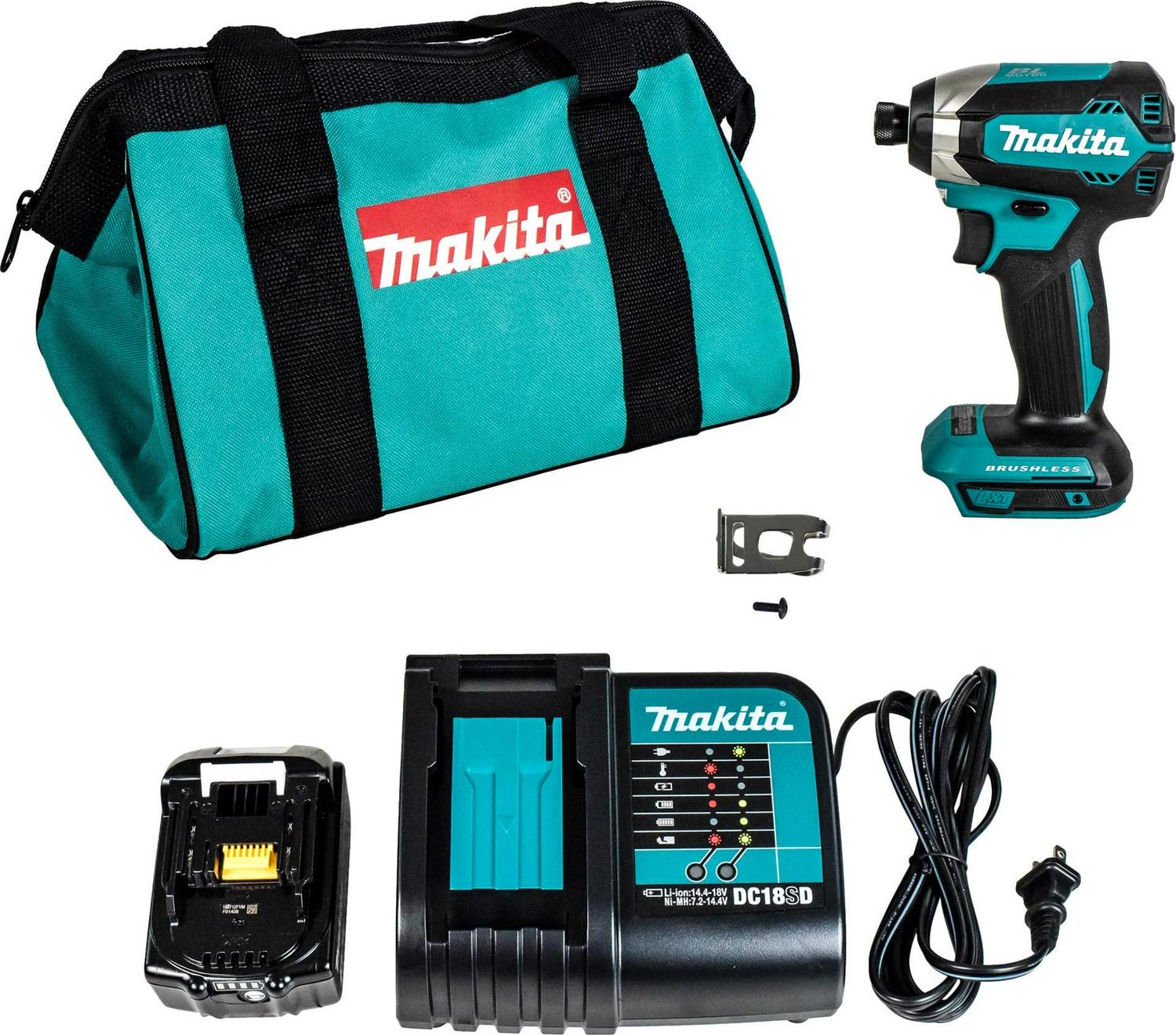 Description: The Makita 18V LXT Lithium-Ion Brushless Cordless Impact Driver Kit (XDT131) delivers maximum versatility and performance, with an efficient Makita BL Brushless Motor for up to 50% longer run time, increased power and speed, and longer tool life. Built-in dual LED lights illuminate the work area. Rubberized soft grip provides increased comfort on the job. Convenient one-touch 1/4 in. hex chuck for quick bit changes. All aluminum gear housing for increased job site durability. Extreme Protection Technology (XPT) is engineered for improved dust and water resistance for operation in harsh conditions 18-Volt LXT Lithium-Ion 3.0Ah battery BL1830B features an integrated LED battery charge level indicator.