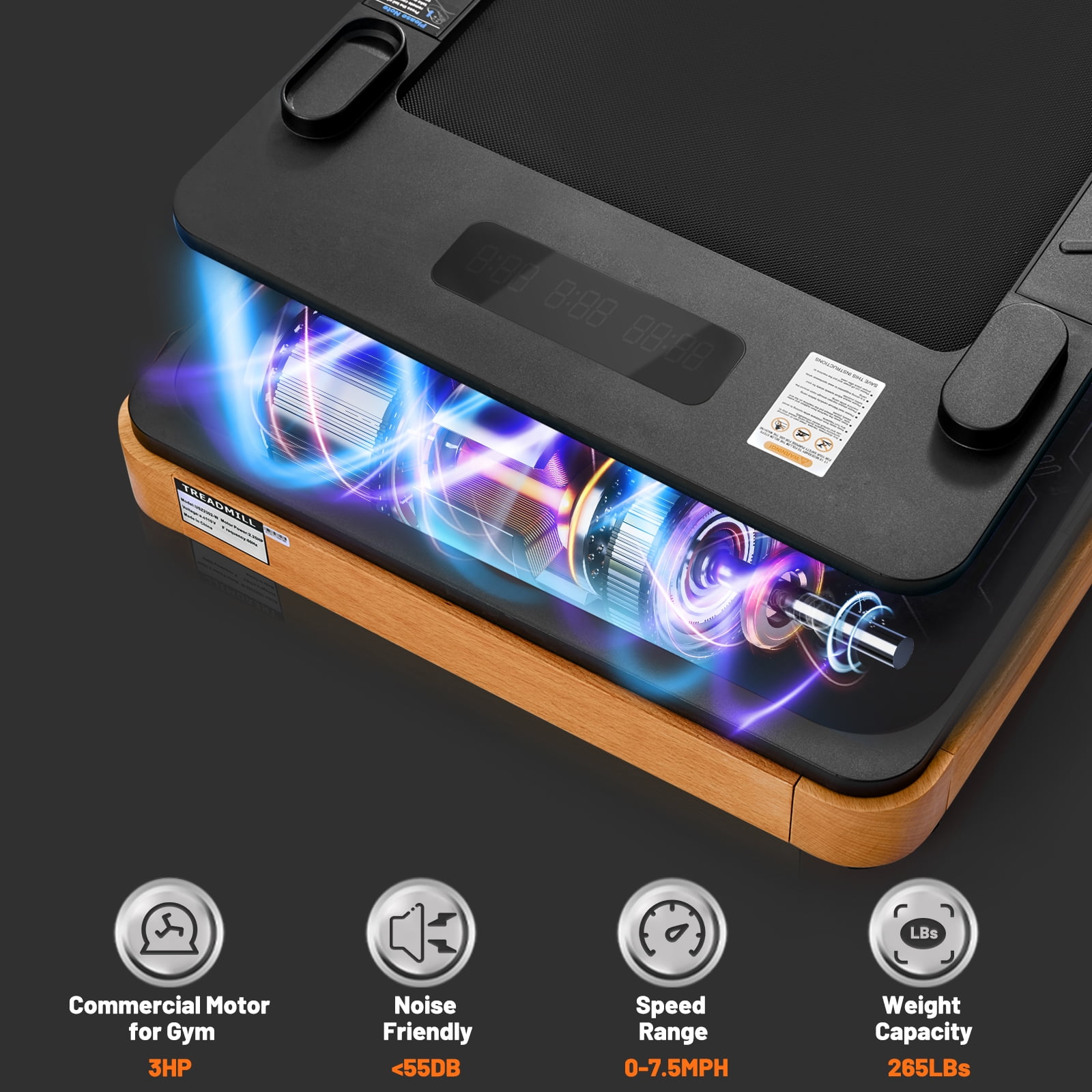 Maksone 3HP Folding Walking Pad, Wood Under Desk Treadmill with Adjustable Handlebar with Remote Control
