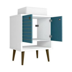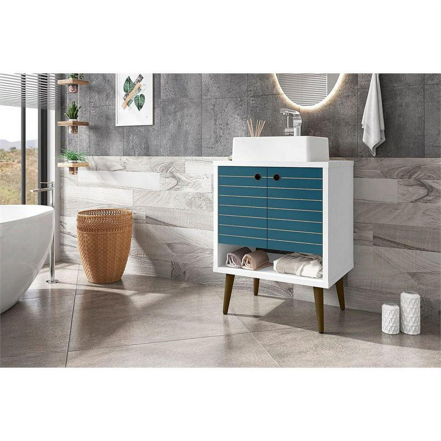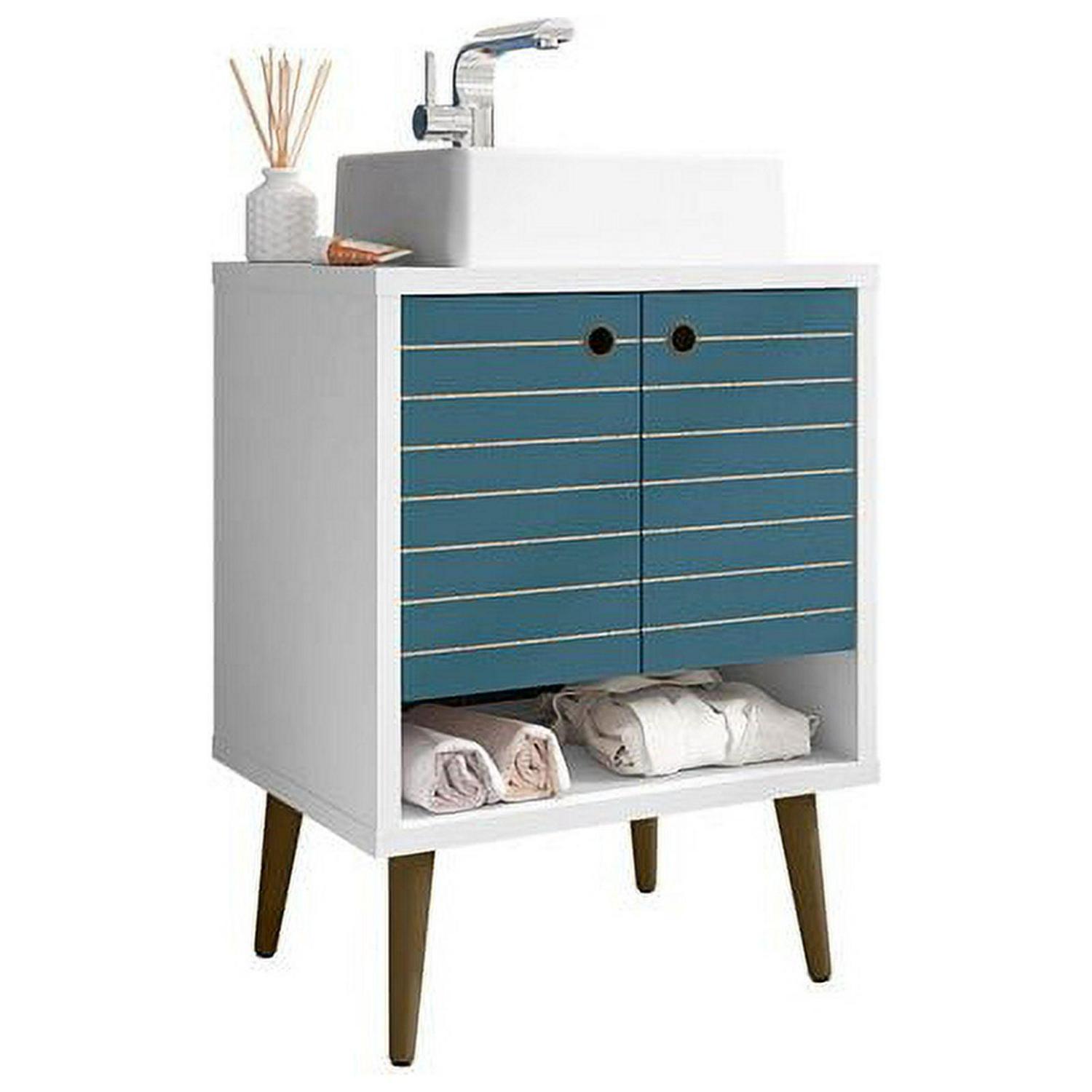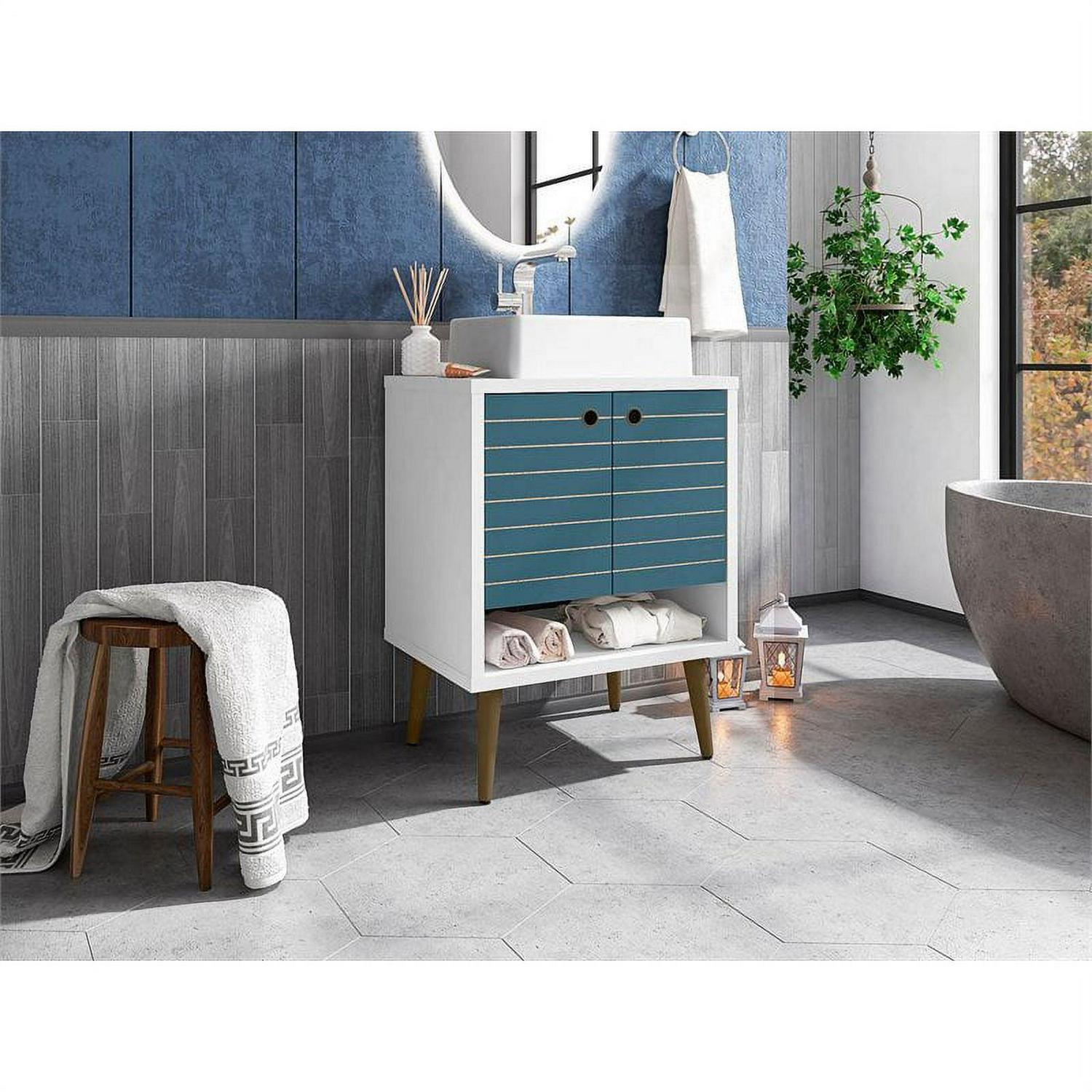 Manhattan Comfort Liberty 23.62 Bathroom Vanity with Sink and 2 Shelves in White and Aqua Blue