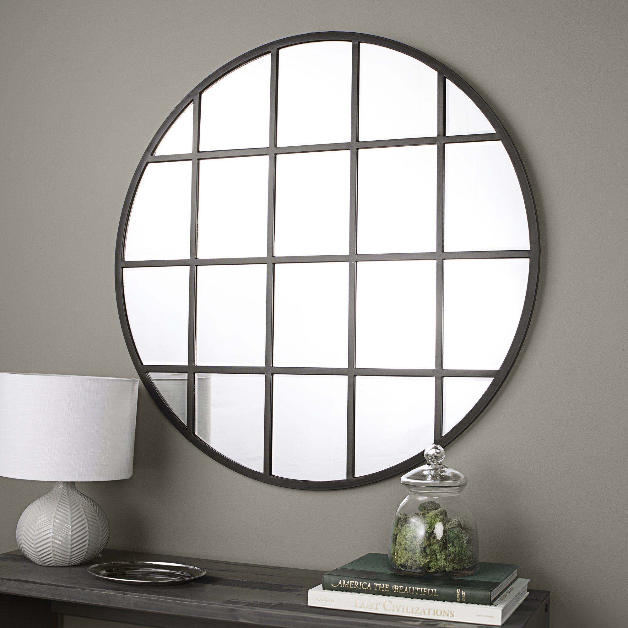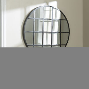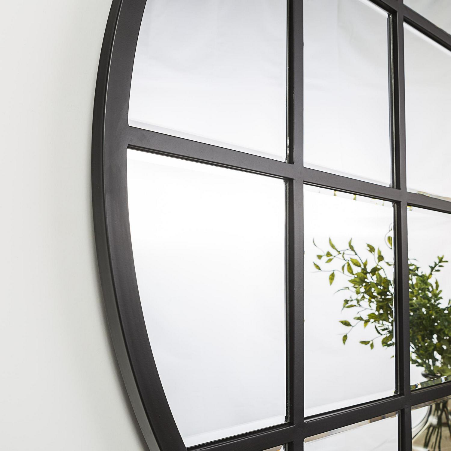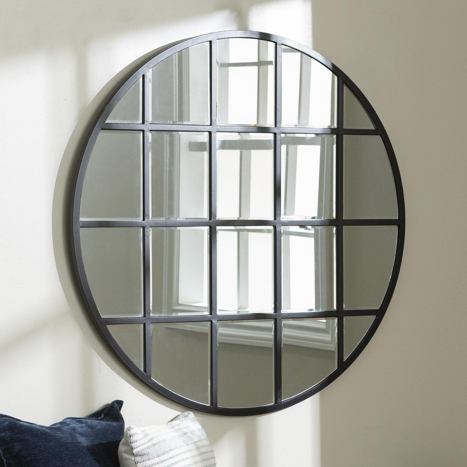 Complete your industrial farmhouse living room or hallway with this window-inspired mirror by Manor Park. The beveled window panes offer an expensive aesthetic without the hefty price tag. The grid-shaped, powder-coated metal frame provides a rustic atmosphere in any room of the house that will last for years to come because of the durable materials. Add sophistication to your bedroom by hanging this round mirror above your bed or on a bare wall. With included hanging hardware, decorating your home doesn t get much easier than adding this urban mirror to any room of the house.