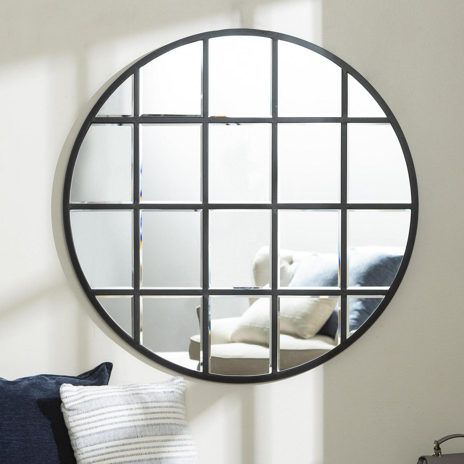 Manor Park 40 Modern Round Beveled Window Wall Mirror, Black