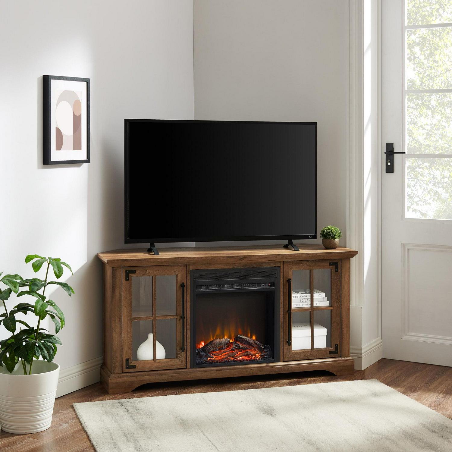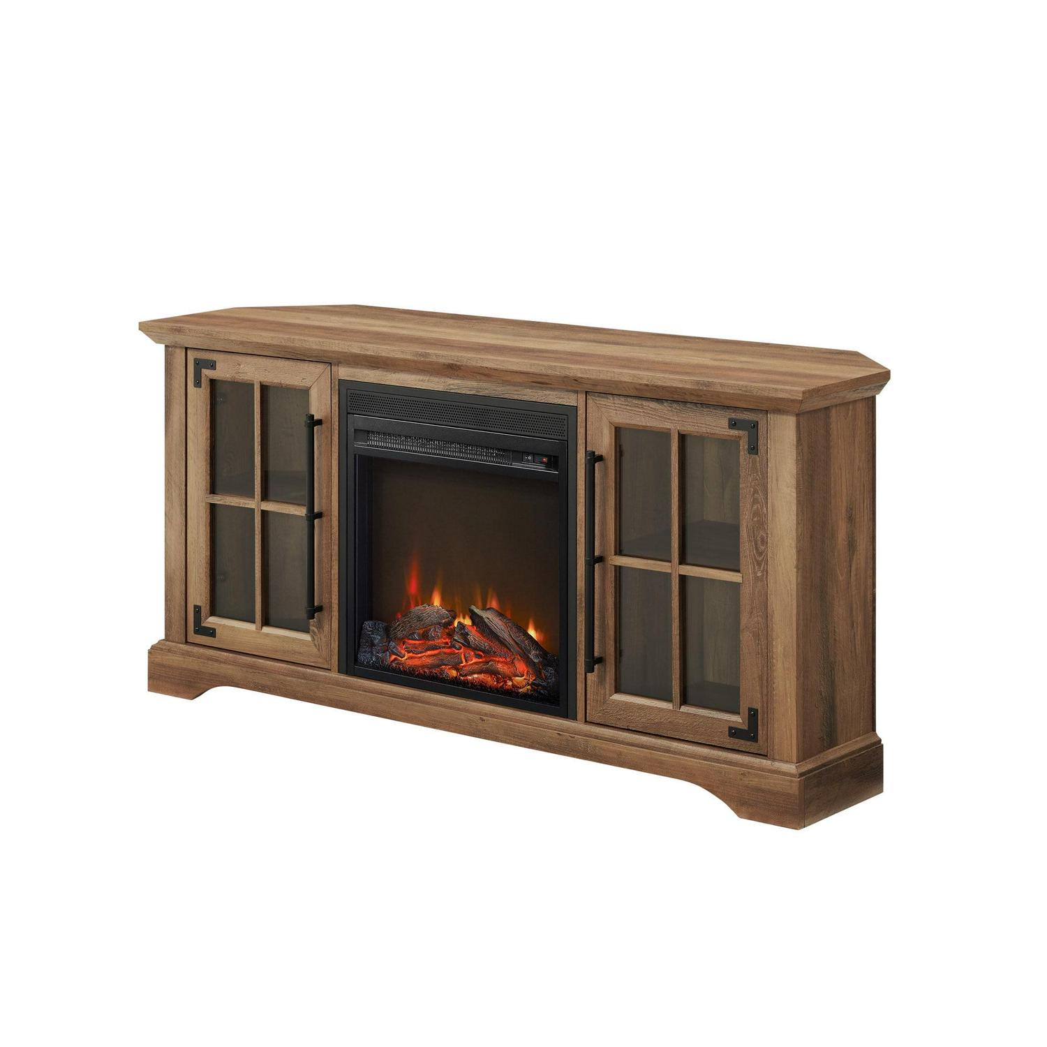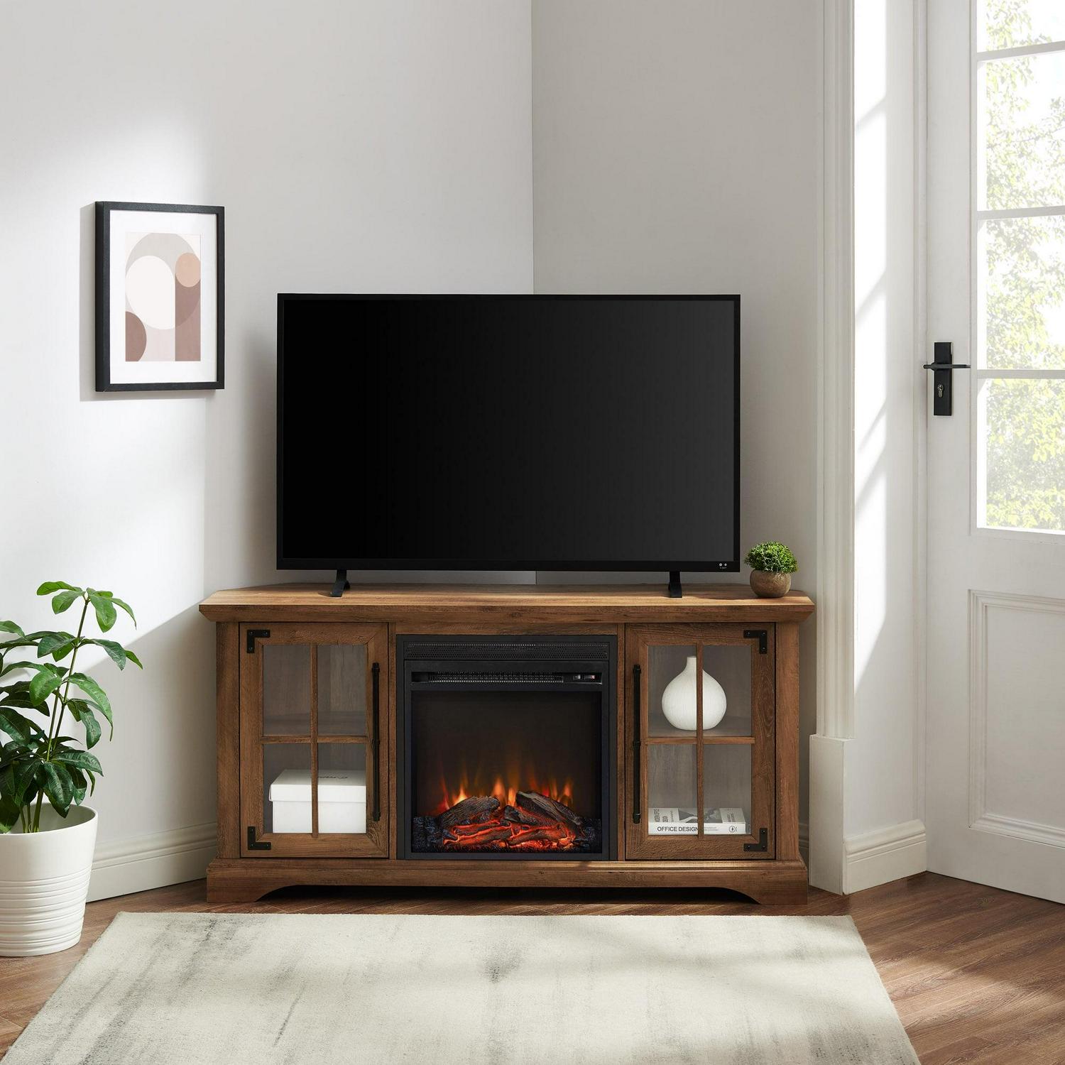 Manor Park 54a Modern Rustic Electric Fireplace Corner TV Stand for TVa s up to 55a , Rustic Oak