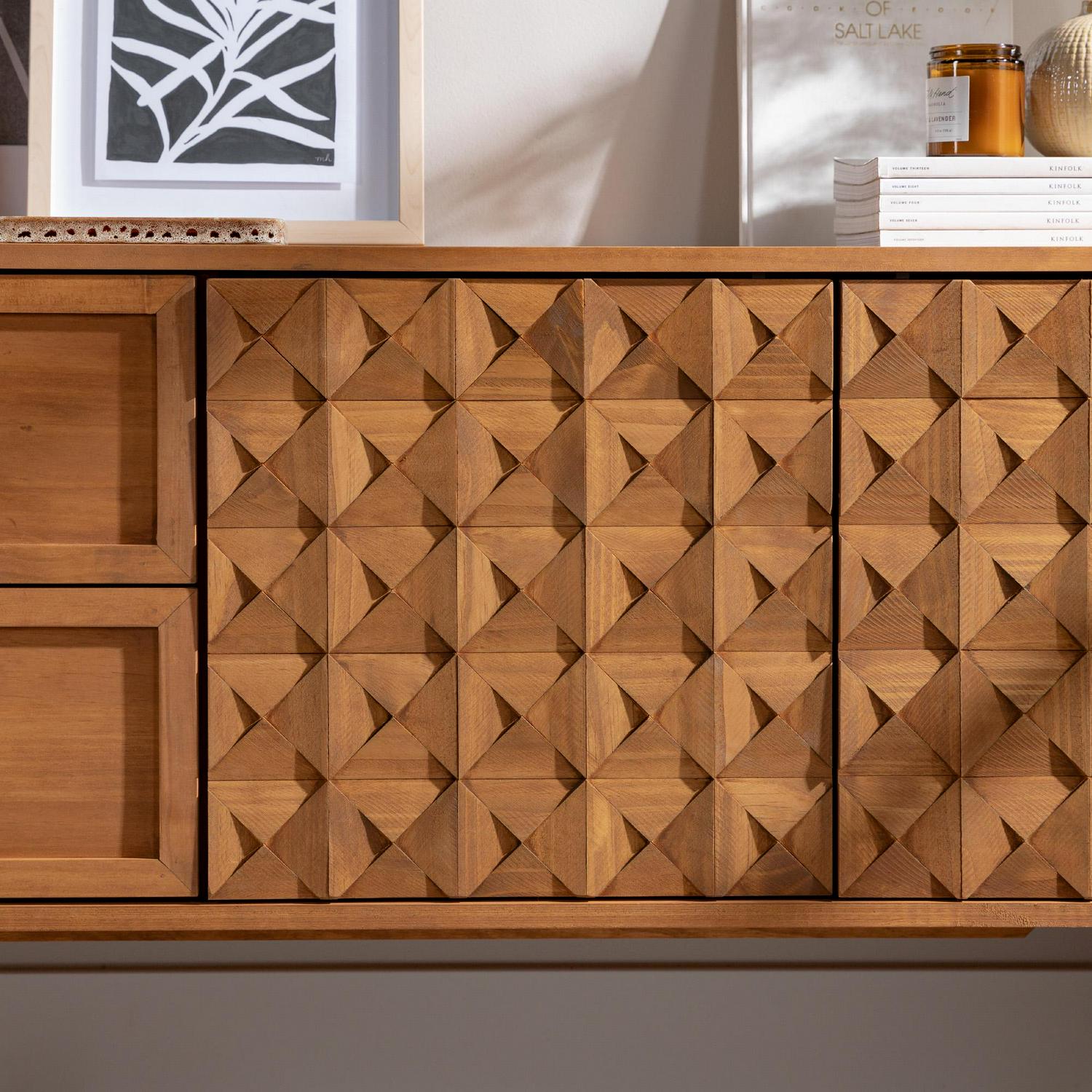 Manor Park Boho Geometric Storage Wood Sideboard, Caramel