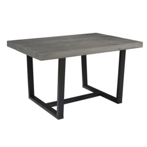 Add some rustic charm into your home with this solid wood table. Made of pine wood responsibly harvested from renewable forests, this sustainable and eco-friendly table is a great addition to kitchen or dining areas. It features a distressed table top that adds an industrial edge. The legs of the piece are stained a dark color for a beautiful two-tone finish. This dining table comfortably seats four.