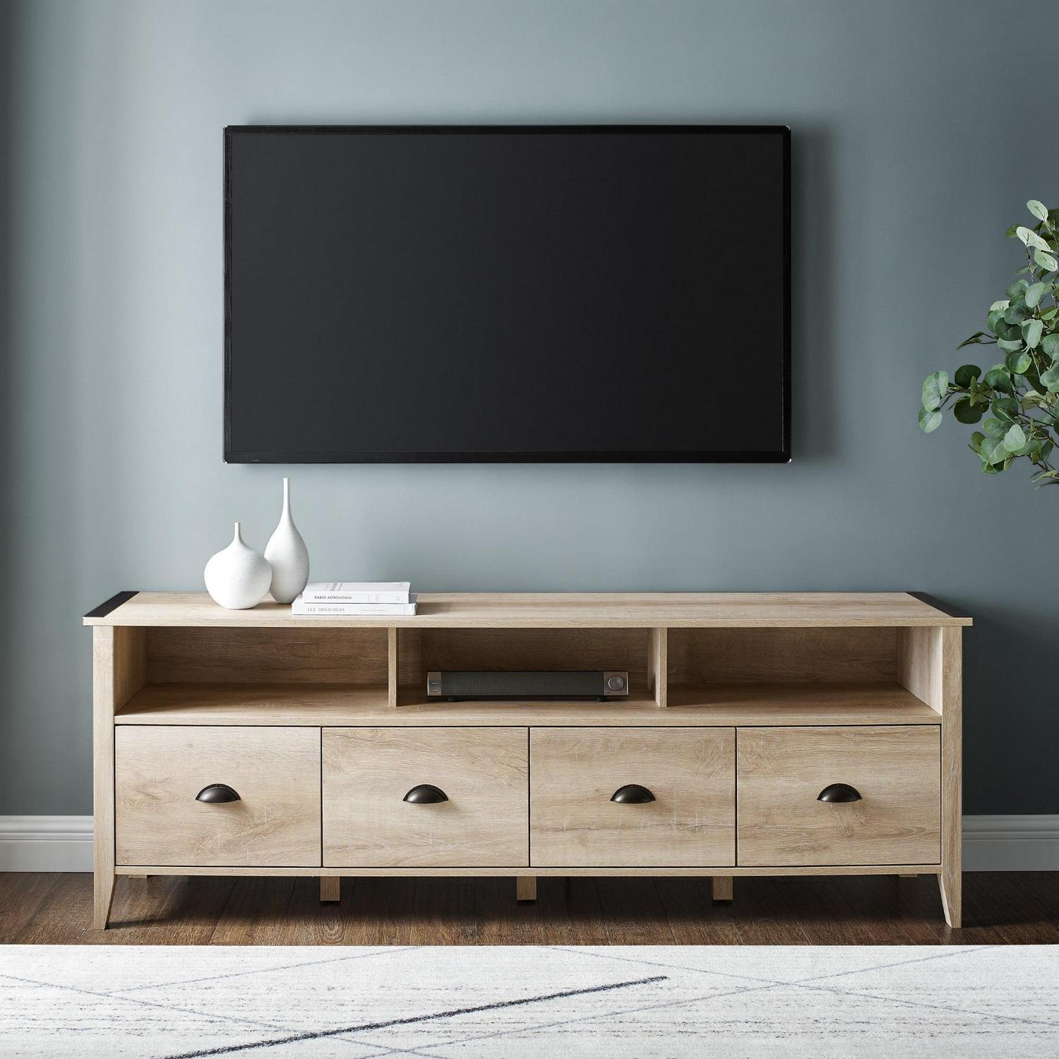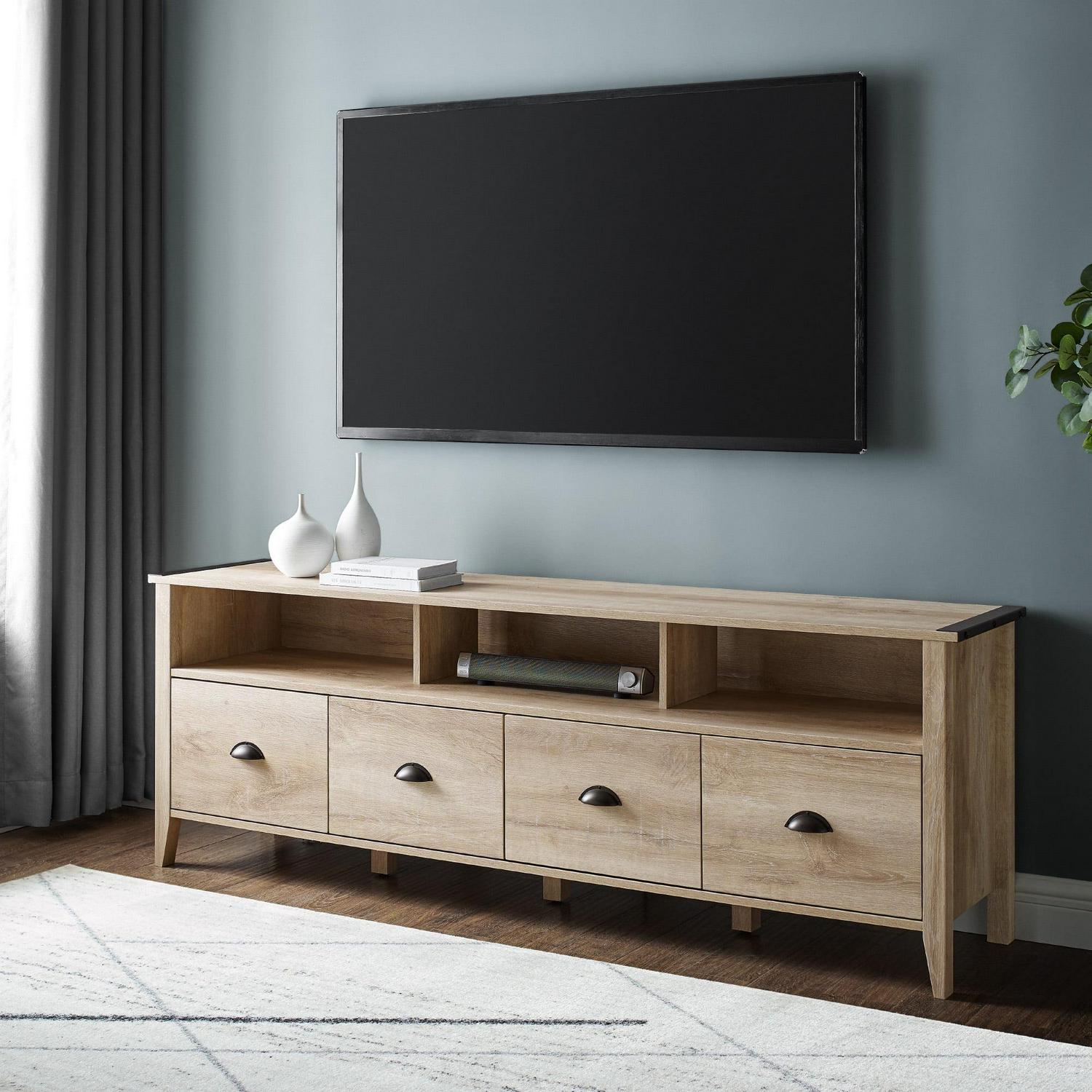 Manor Park Industrial Farmhouse TV Stand for TVs up to 80″, White Oak: