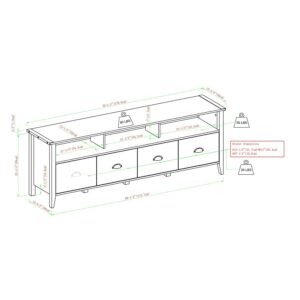 Display your TV in style with the Manor Park Industrial Farmhouse 4 Drawer TV Stand. The versatile frame and powder-coated metal accents provide an elevated look to your rustic, country, or industrial home. With four drawers on smooth, telescoping metal glides, the organizational possibilities are endless. Place media components in the three open cubbies with ease, knowing the cord management ports will keep your cables tidy. And the sturdy MDF wood frame provides a reliable storage console you can add to your home office or living room.