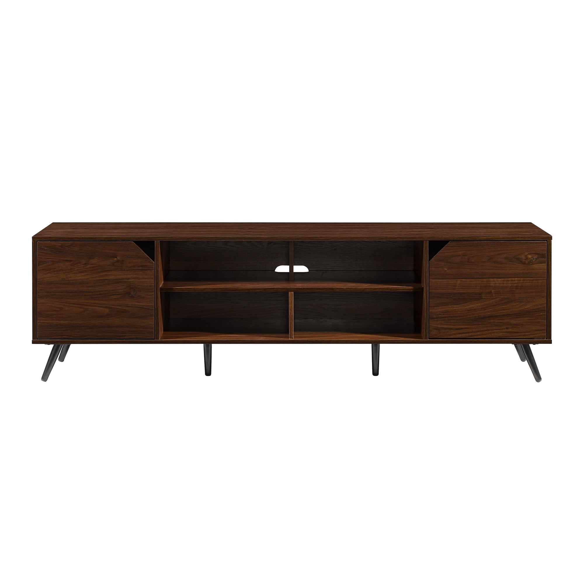 Walker Edison Mid-Century Modern Angle-Door TV Stand for TVs up to 80”, Dark Walnut