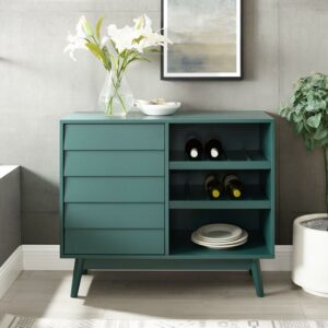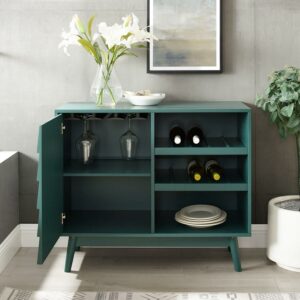 Manor Park Mid Century modern Louvered Door Bar Cabinet, Dark Teal