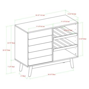 Cocktails after work will showcase your great skill and fun personality with this midcentury modern bar cabinet by Manor Park. The louvered door conveniently hides the finger pull for a sleek, finished look. Three stemware racks within the cabinet and the open storage, reversible bottle shelves create the perfect place for your hosting essentials. Flip the shelves to create a flat surface to display travel souvenirs or family photos. The solid rubber wood base and warp-resistant MDF body create a lasting piece you can enjoy in your home for years.