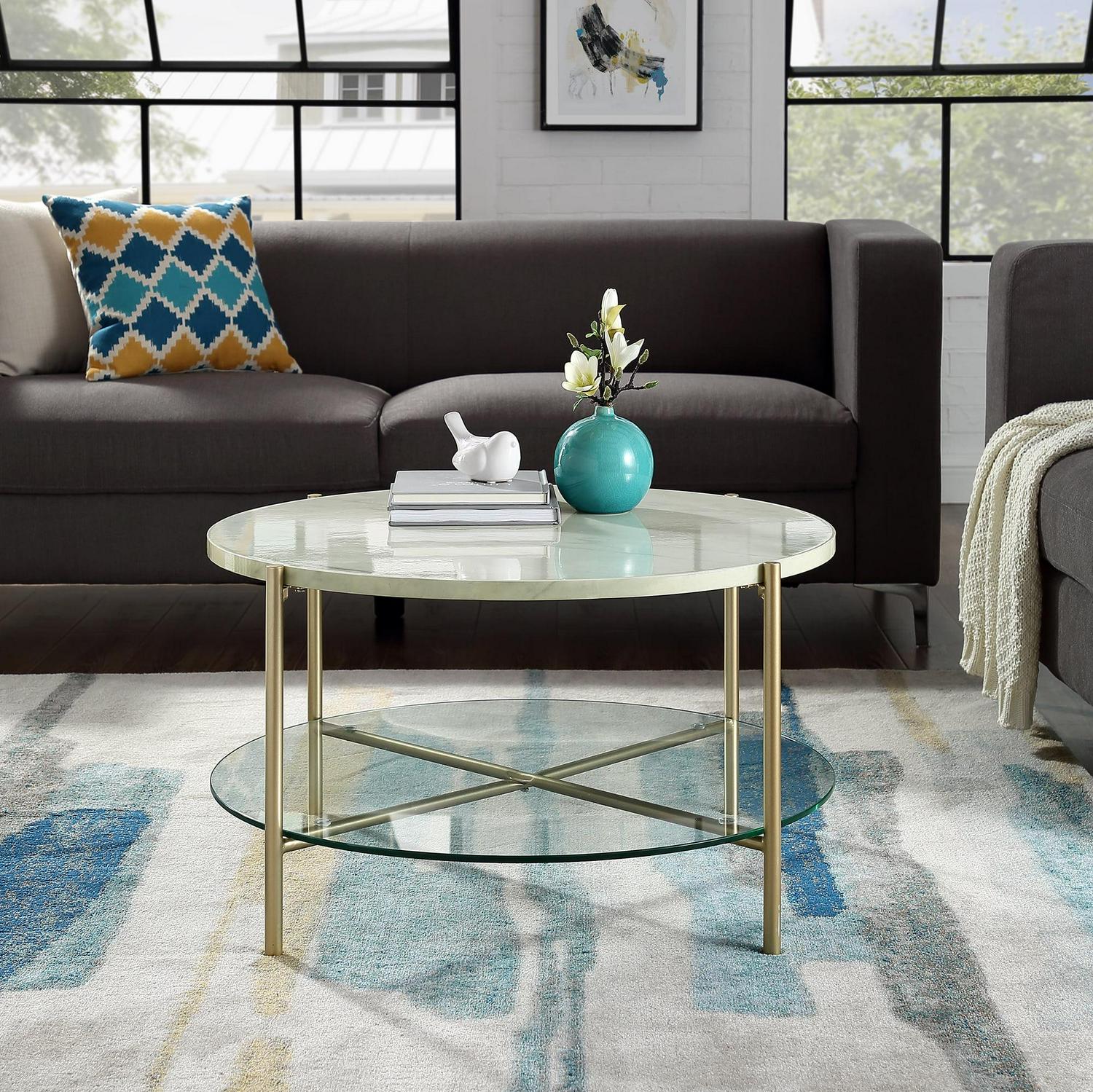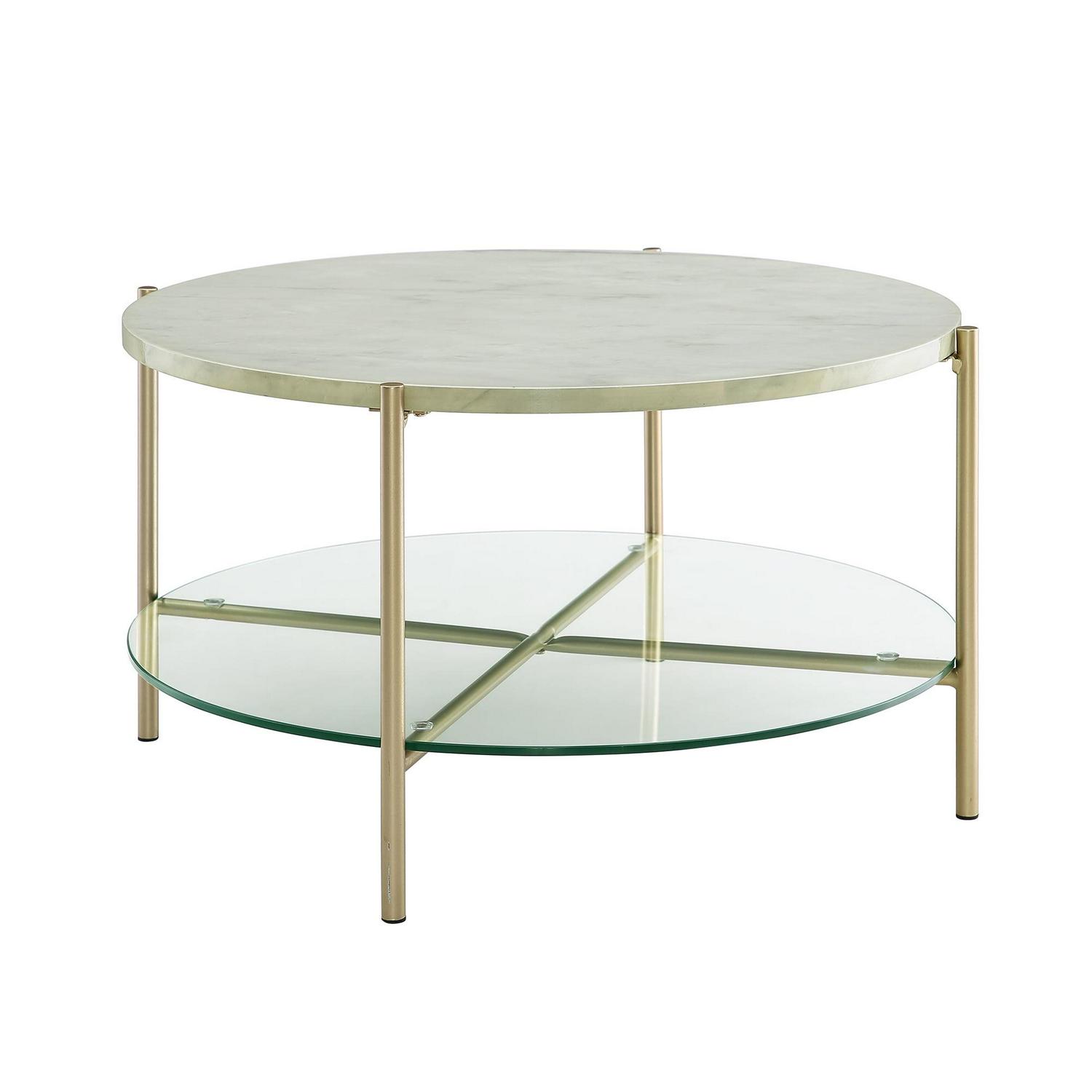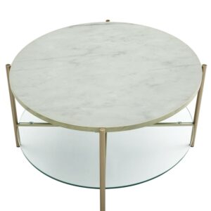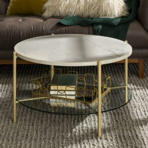 Manor Park Mid-Century Round Coffee Table – White Marble/Gold: