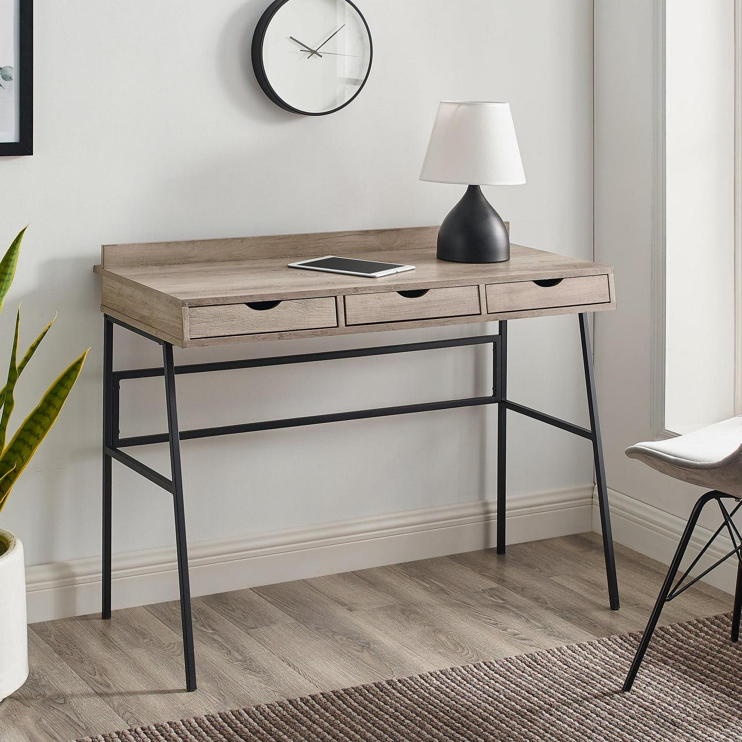 Manor Park Modern 3-Drawer Grey Wash Desk