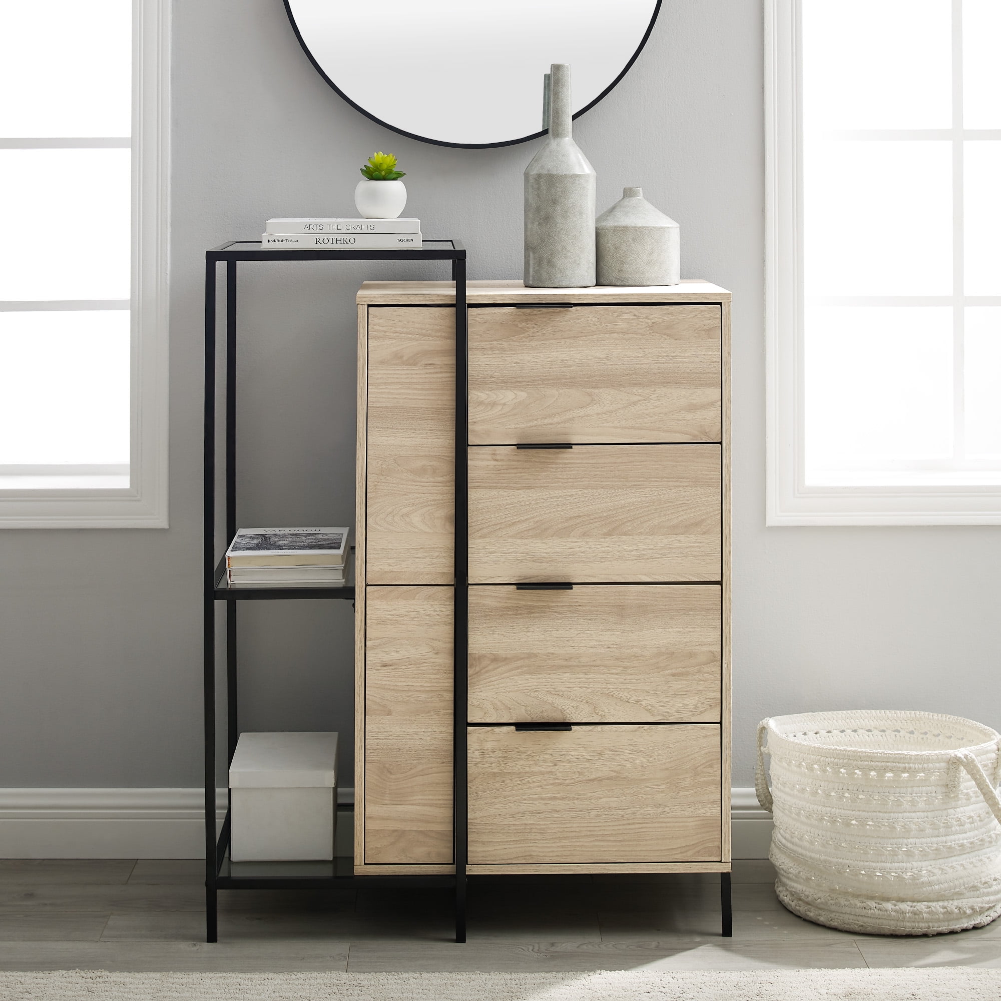 Walker Edison Modern Asymmetric Metal and Wood Accent Chest, Birch