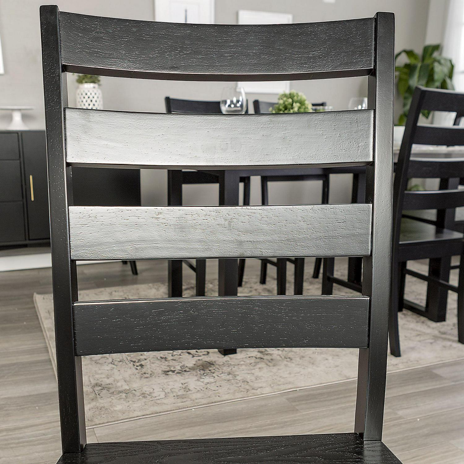- With a classic ladder back design featuring wood slatted backrests