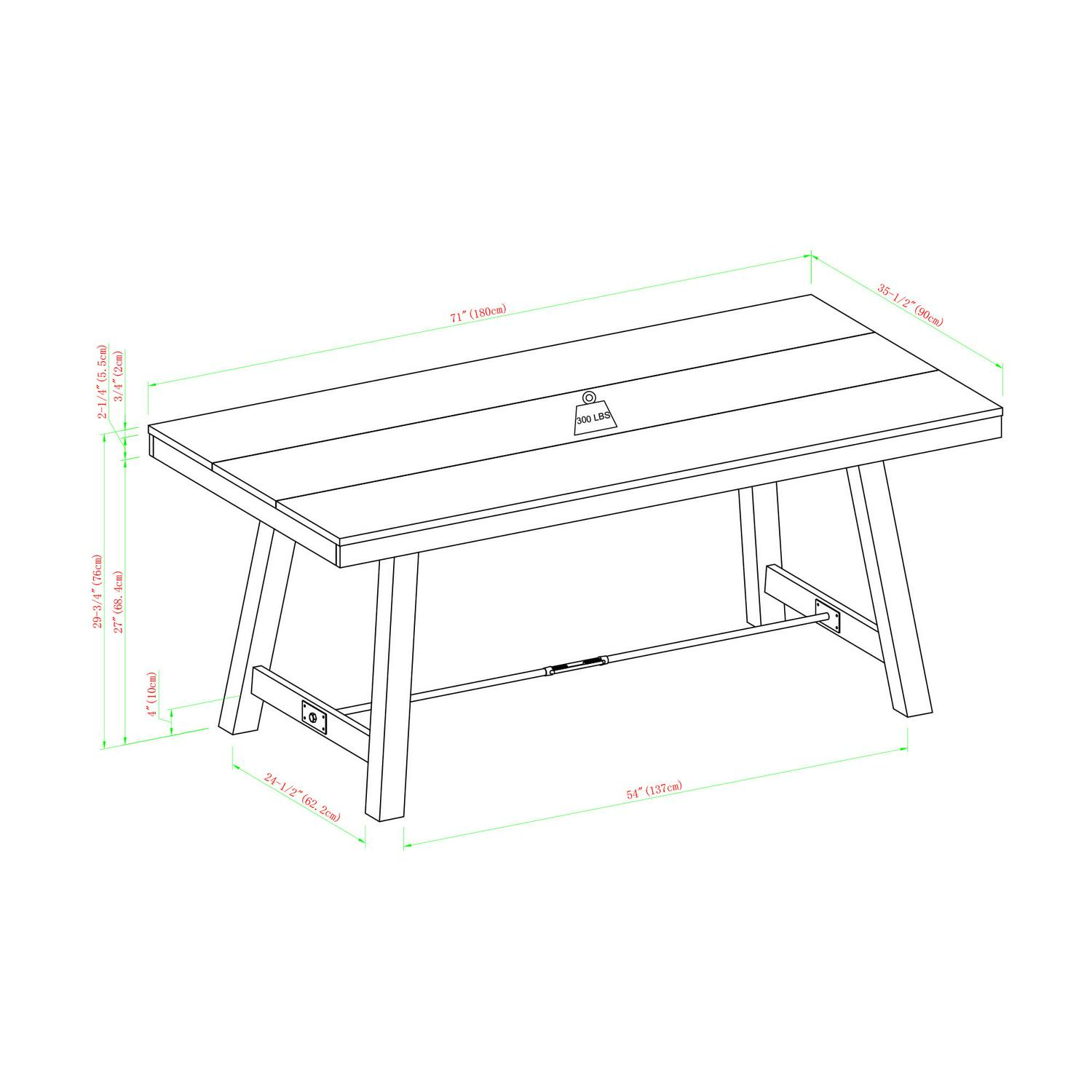 - Assembled Product Dimensions (L x W x H): 70.75 x 35.50 x 30.00 Inches