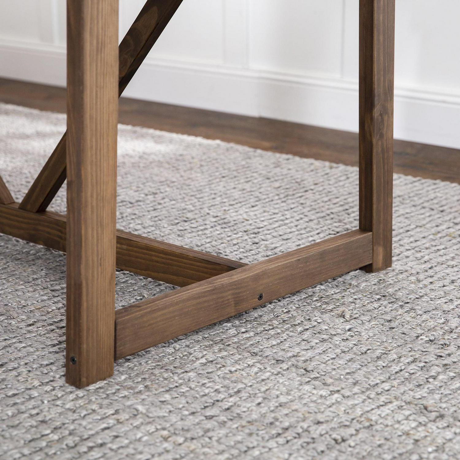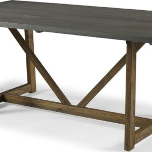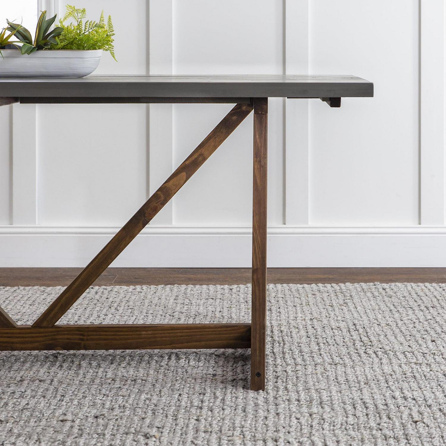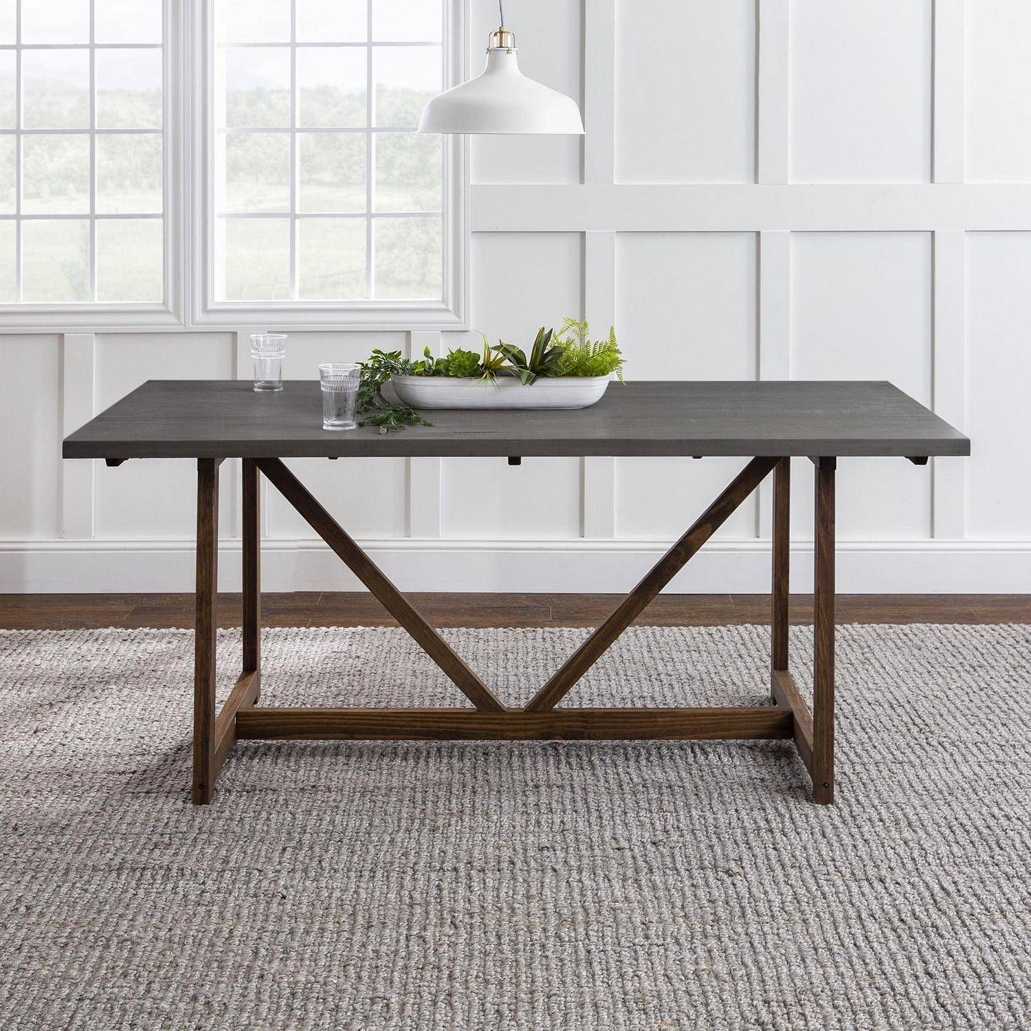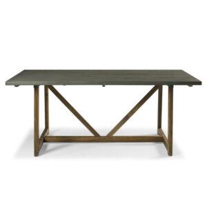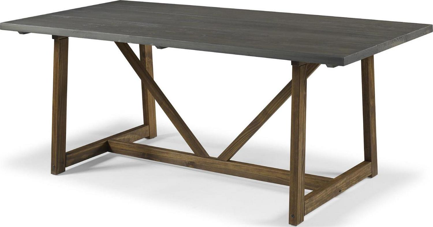 Gather your family around the Dolores Solid Wood Trestle Dining Table in Grey by River Street Designs for intimate meals and exciting game nights. With its ability to seat six adults, this table ensures everyone can be included in the fun. The trestle style base and solid wood construction promise durability that lasts for years to come. And the two-tone design and distressed tabletop create a modern farmhouse aesthetic that makes the kitchen in every apartment or house feel like home. Finish the look with the matching rustic bench or your favorite chairs. And don t feel intimidated by the required assembly; this table is easy to build.