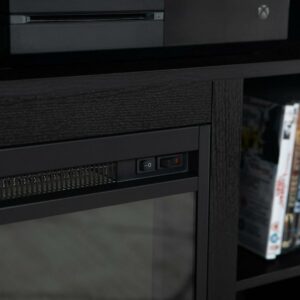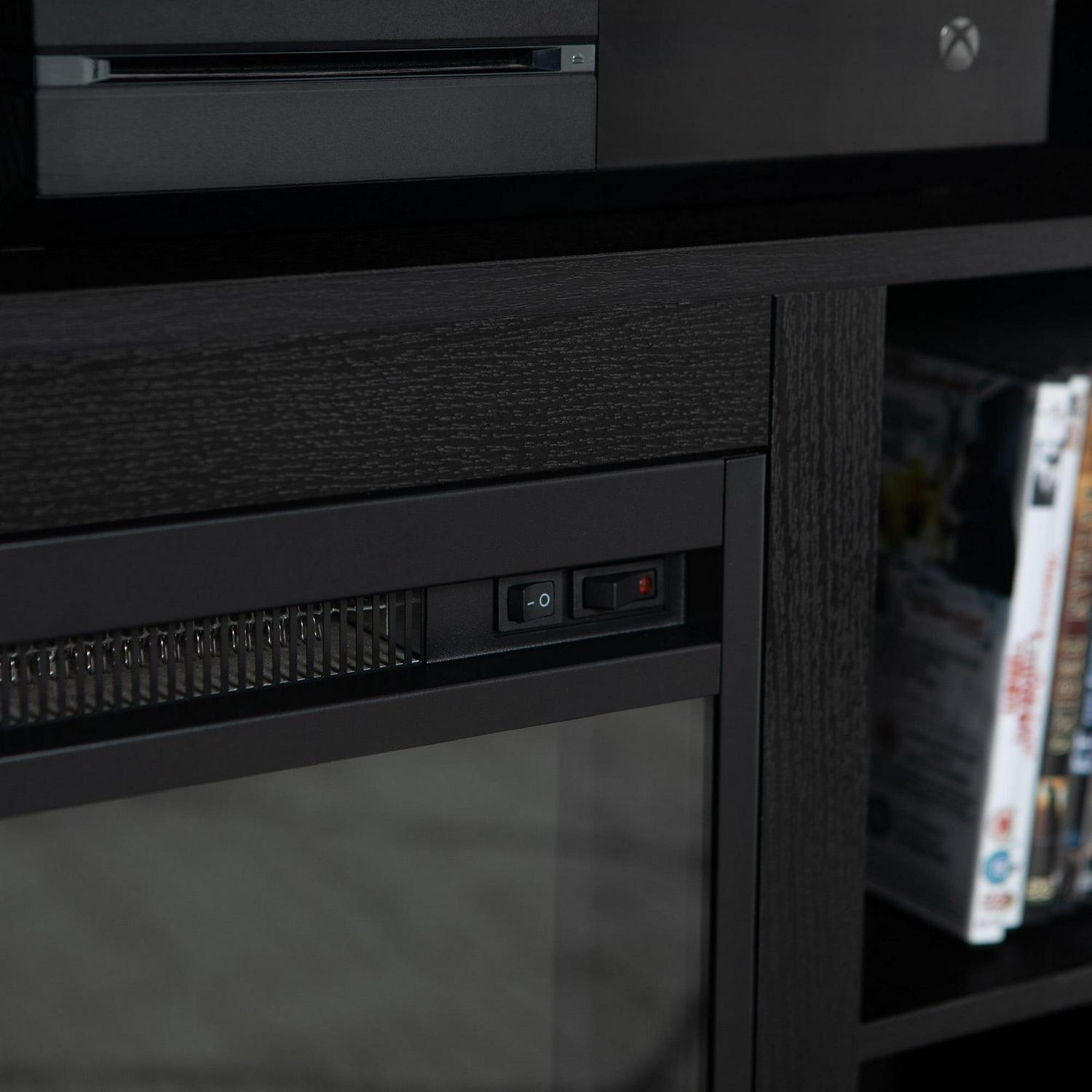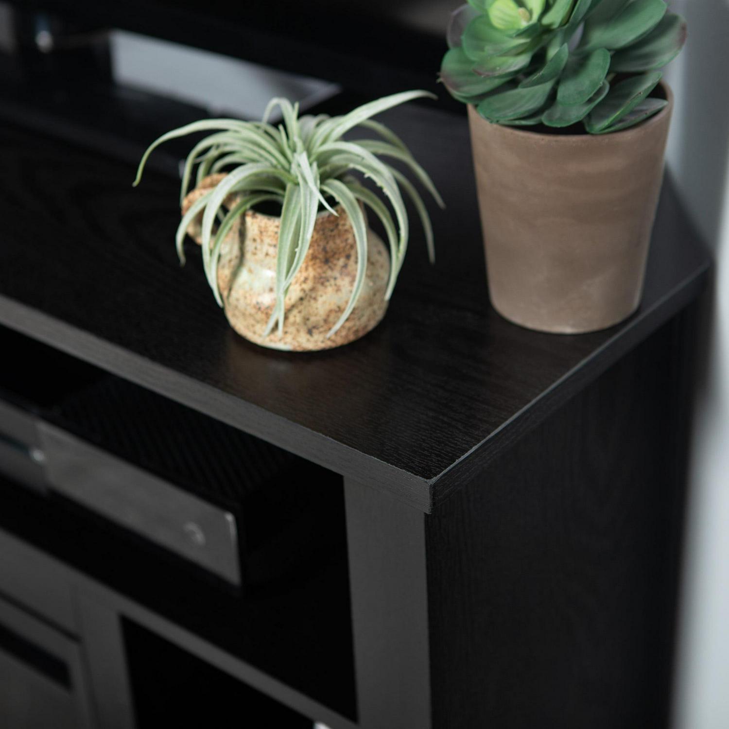 Display your TV in style with this sensible, stylish Black Tall Corner Fireplace TV Stand. Its space-saving corner design will fit perfectly into your living space to provide you optimal use. It features adjustable side shelves to fit your media components and accessories. Just as important, there’s a cable management system since we know how important it is to keep all those wires organized for a tidy entertaining space. Crafted from high-grade MDF, this unit will accommodate most flat-panel TVs up to 50 inches.