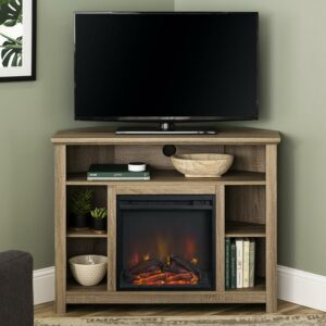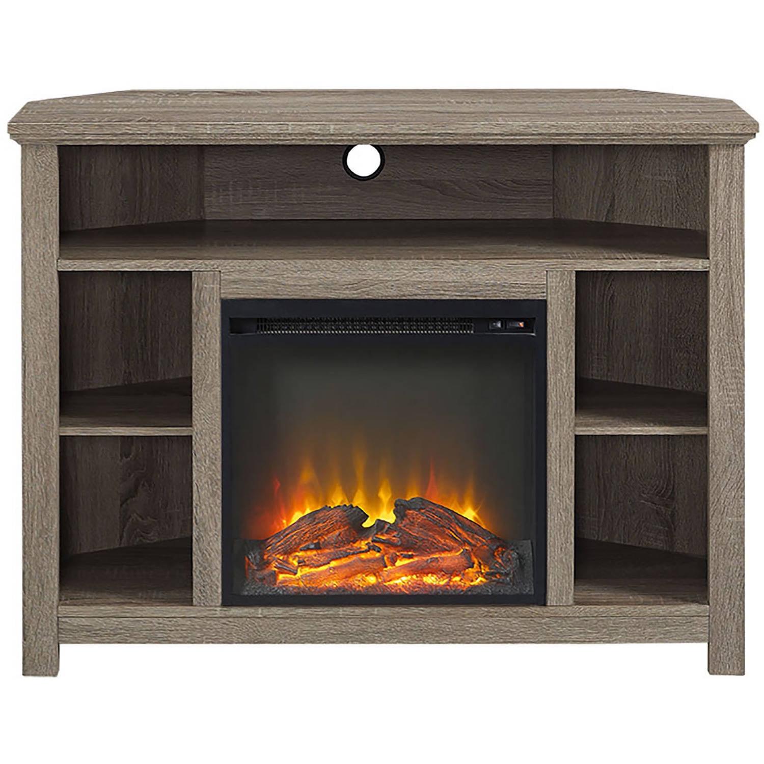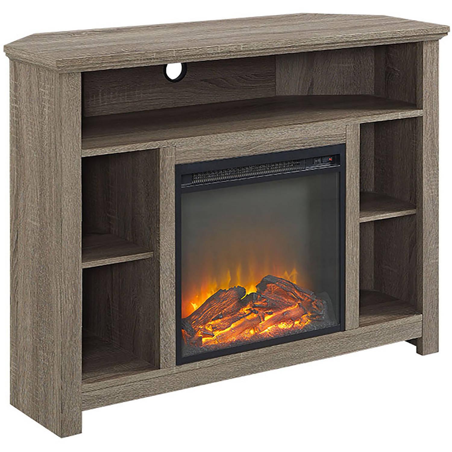 Display your TV in style with this sensible, stylish Driftwood Tall Corner Fireplace TV Stand. Its space-saving corner design will fit perfectly into your living space to provide you optimal use. It features adjustable side shelves to fit your media components and accessories. Just as important, there’s a cable management system since we know how important it is to keep all those wires organized for a tidy entertaining space. Crafted from high-grade MDF, this unit will accommodate most flat-panel TVs up to 50 inches.