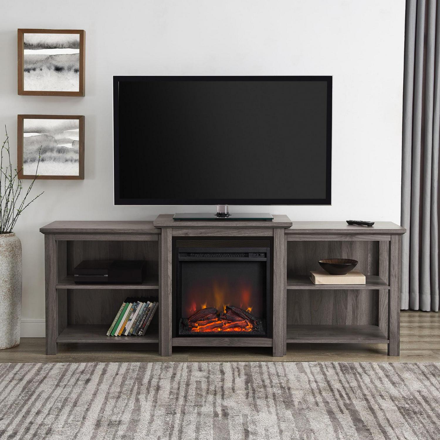 Manor Park Tiered Fireplace TV Stand For TVs up to 80″, Slate Grey: