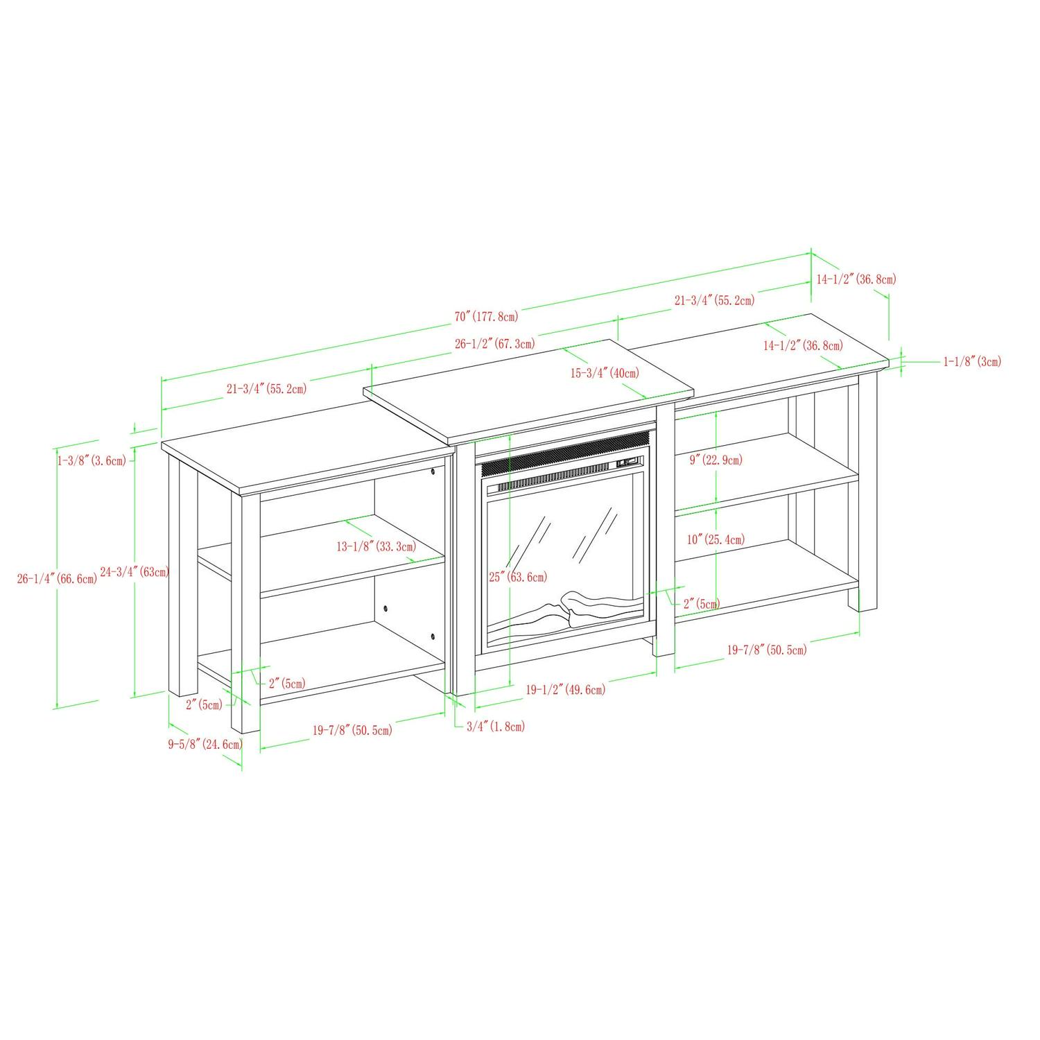 – Durable Laminate, Powder-Coated Metal, High Grade MDF, Fireplace