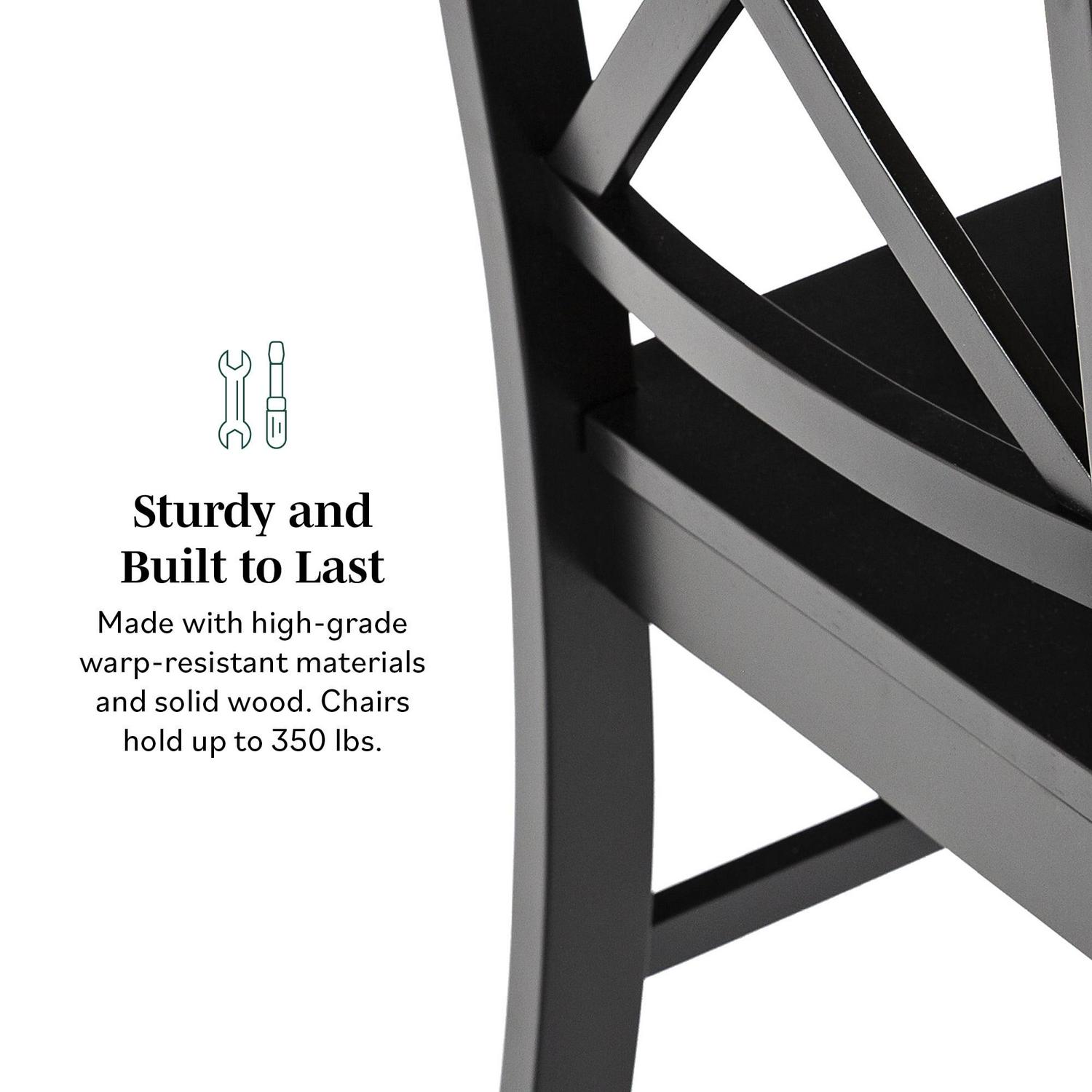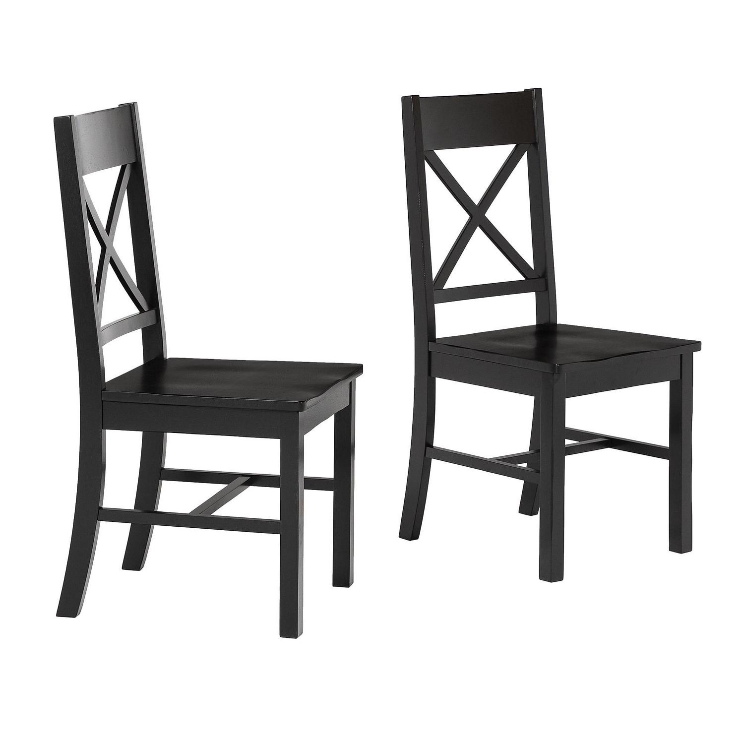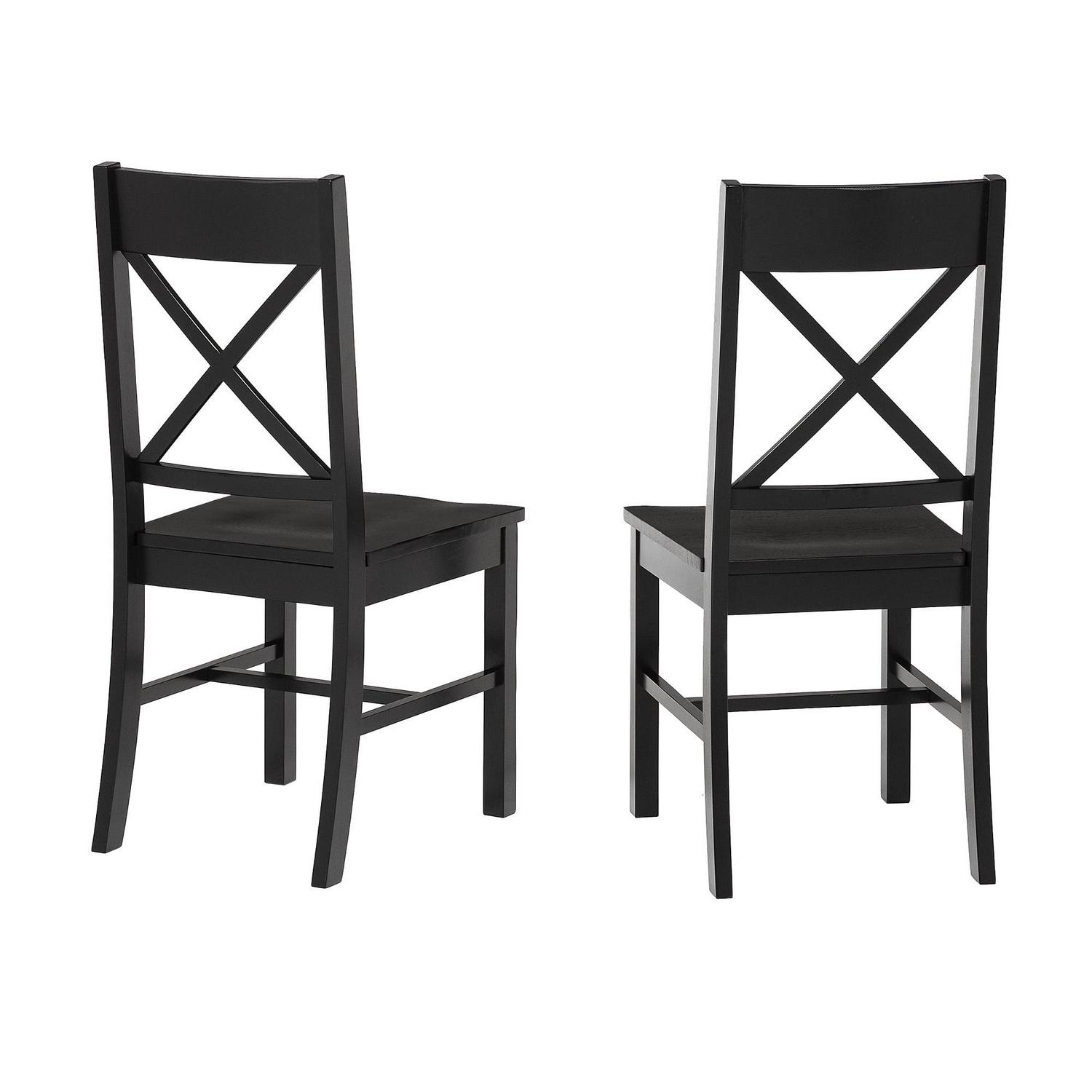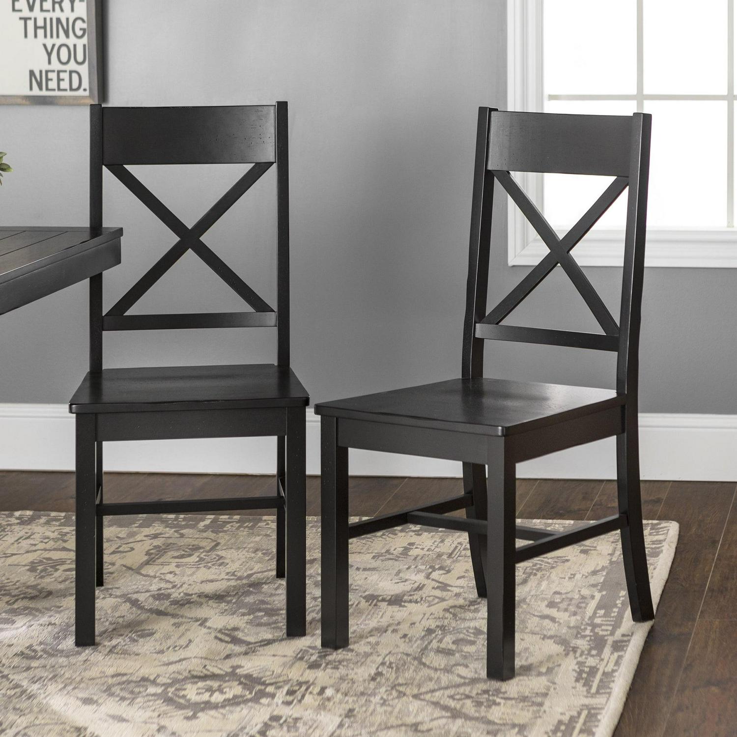 Accommodate more friends and family at holiday events or casual dinners in classic style with these high-grade dining chairs by Walker Edison. The X-back design and comfortable, contoured seat provide a relaxed atmosphere complemented by these distressed chairs. A variety of colors to choose from guarantees that these chairs will match any kitchen or dining table. Made from solid wood and high-grade MDF with solid wood veneer, these chairs will last through every spaghetti meal and game night. Pull several of these around your table during the holiday season to create the perfect ambiance of familial love and home-cooked meals.