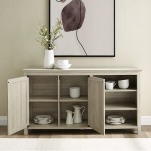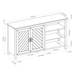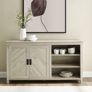 Hosting game nights just became so much simpler with the Stayton Birch Transitional 2 Door Sideboard by Manor Park. Two doors hide two adjustable shelves that make the perfect home for board games, blankets, or movies. Display family photos and your favorite novels on the two open storage adjustable shelves to show off your great taste. And the angled grooved door fronts provide transitional taste to complement your coastal or farmhouse taste. Place your TV up to 65 inches on the side top surface to host perfect watch parties and movie marathons.