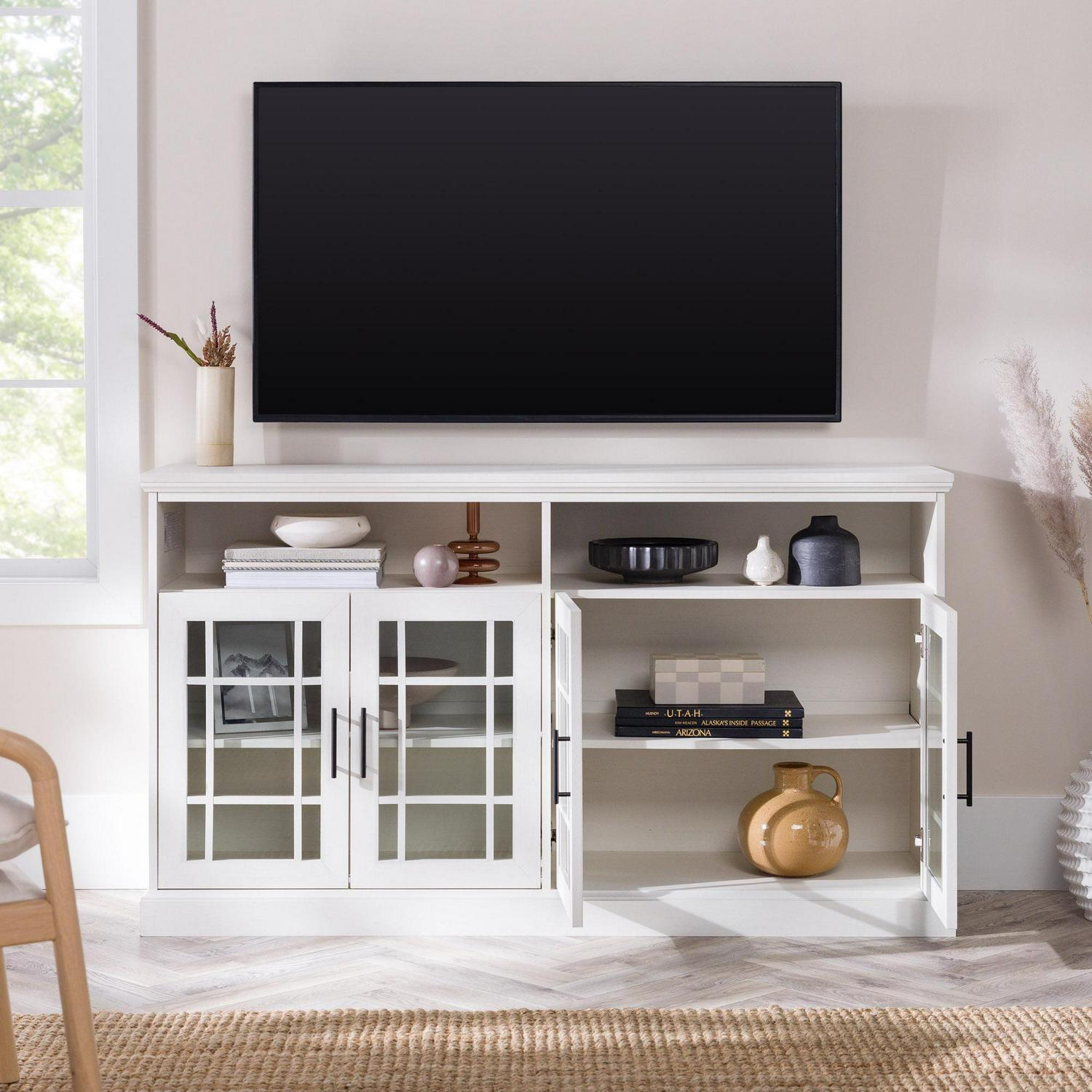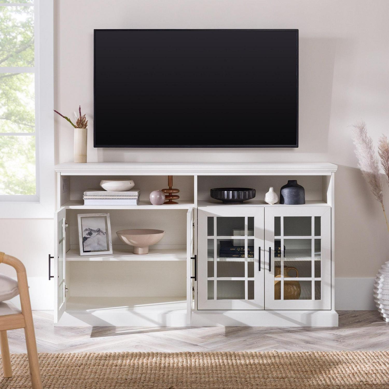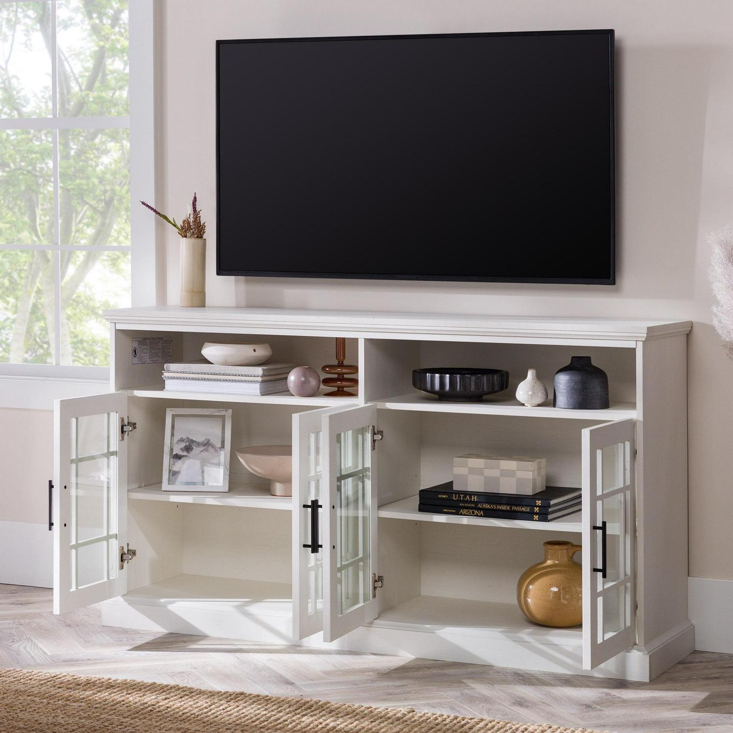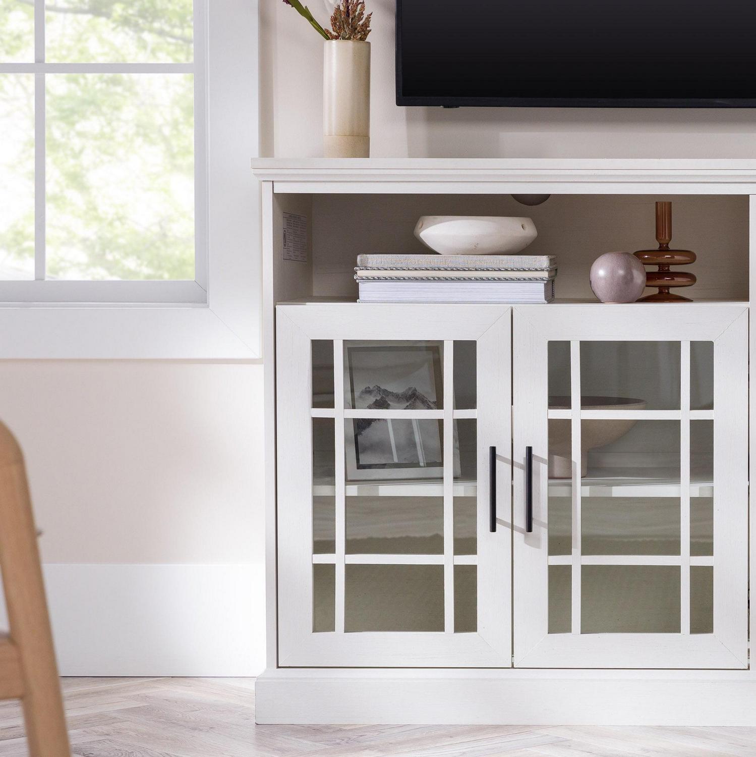 Manor Park Transitional Glass Door Tall TV Stand for TVs up to 65 , White