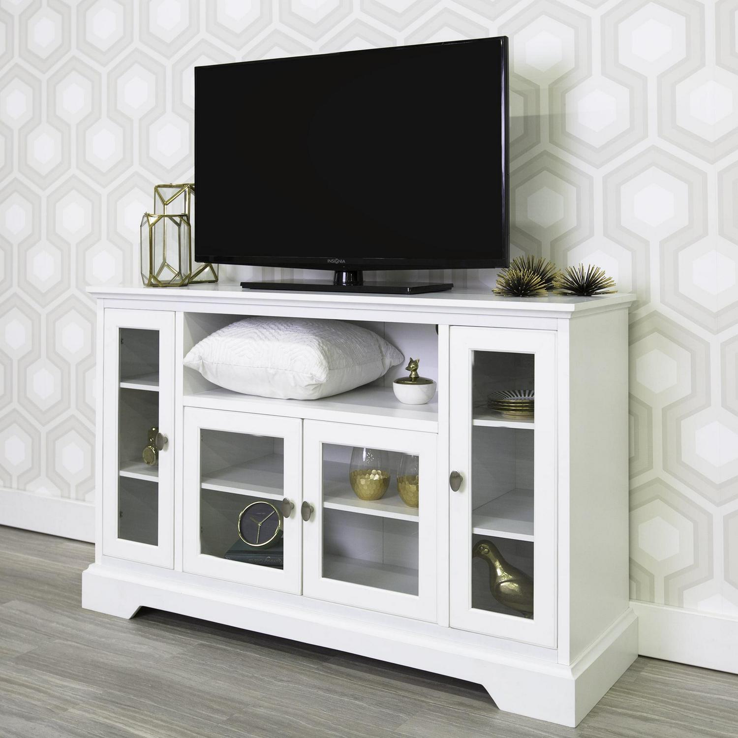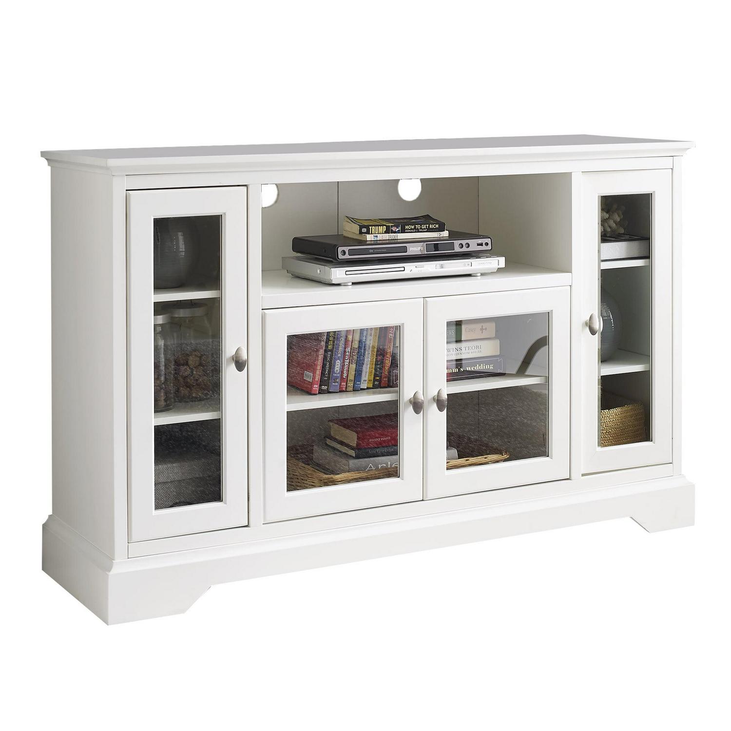 – Transitional Highboy Glass Door White Wood TV Stand by Manor Park