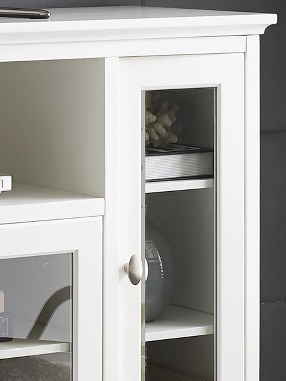 - Transitional Highboy Glass Door White Wood TV Stand by Manor Park