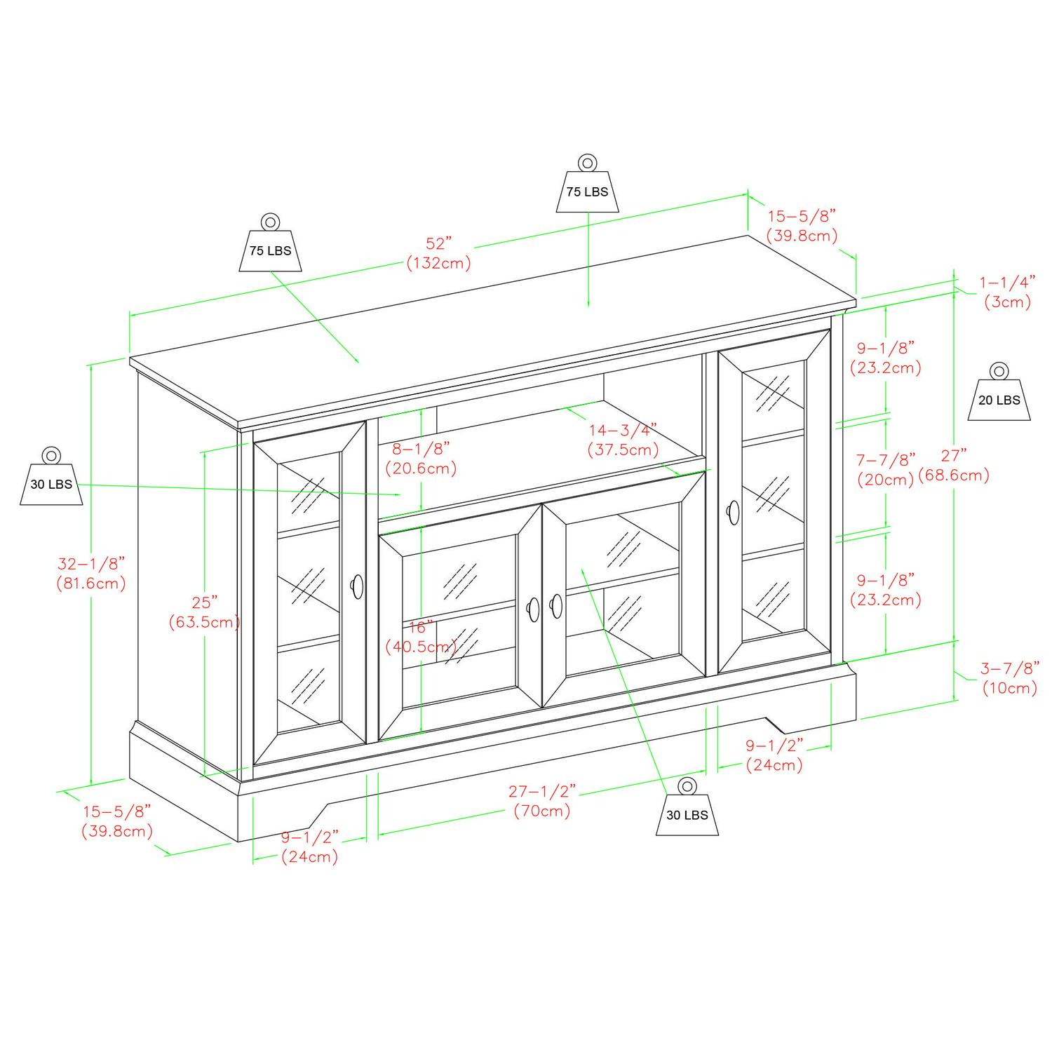 Organize your shared spaces with this highboy entertainment center by Manor Park. With five adjustable, closed-storage shelves and one open storage cubby at your fingertips, you will be able to find a home for your large movie collection, electronic accessories, and books. Four glass-paned doors with metal handles and hand-brushed antiquing provide a traditional aesthetic that complements any home decor. Cord management options allow tidy, easy-to-reach game console and TV accessory cables. Made from painted, high-grade MDF, tempered glass panes, and painted metal, this transitional media console will be a piece you can rely on for years to come.