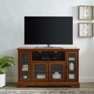 Manor Park Transitional Highboy Glass Door Wood TV Stand, Rustic Brown