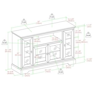 Organize your shared spaces with this highboy entertainment center. With five adjustable, closed-storage shelves and one open storage cubby at your fingertips, you will be able to find a home for your large movie collection, electronic accessories, and books. Four glass-paned doors with metal handles and hand-brushed antiquing provide a traditional aesthetic that complements any home decor. Cord management options allow tidy, easy-to-reach game console and TV accessory cables. Made from painted, high-grade MDF, tempered glass panes, and painted metal, this transitional media console will be a piece you can rely on for years to come.