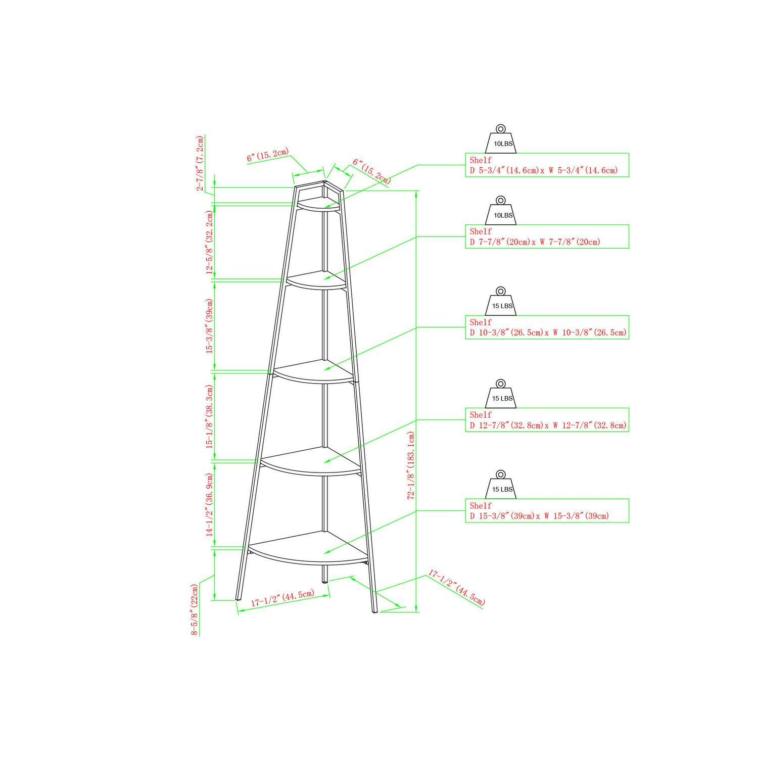 - Number of Shelves: 5