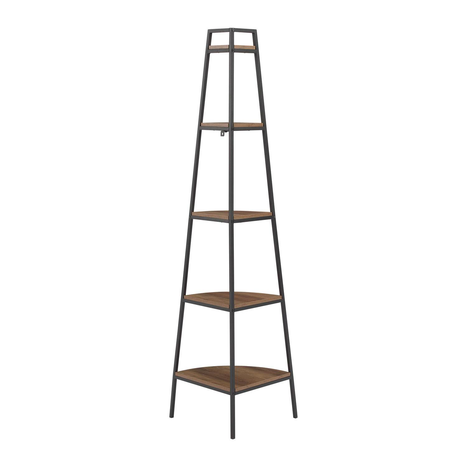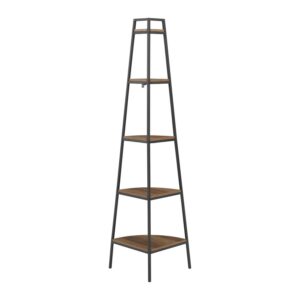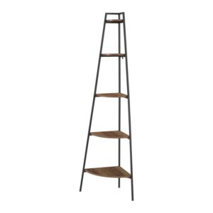 Manor Park Urban 72 Metal and Wood 5-Shelf Corner Bookshelf, Rustic Oak