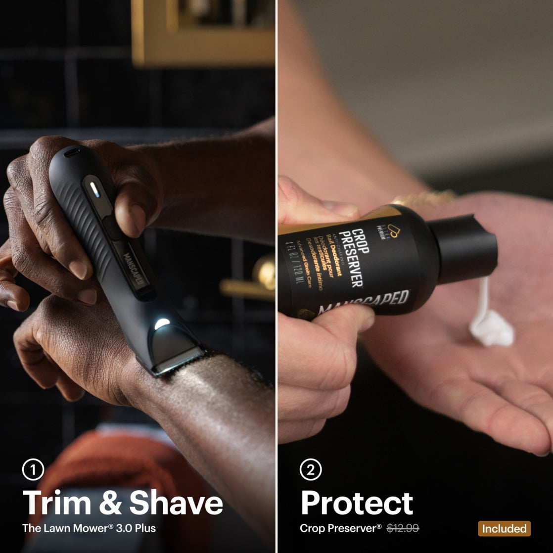 THE LAWN MOWER® 3.0 PLUS: Let this be your introduction to life on the trimmed side. If you’ve ever wanted to tidy up your body or groin shaving routine, then The Lawn Mower® 3.0 Plus is the ball shaver for you. SKINSAFE® TECHNOLOGY: Our updated SkinSafe® ceramic blade is rounded for comfort with a built-in guard designed to help reduce nicks and cuts. Included are two adjustable comb attachments that allow you to trim from 2-12 mm. *SkinSafe® technology does not guarantee cut protection. SMOOTH & STEADY: After fully charging your ball trimmer, gently place the flat side of the blade flush against your skin and shave against the direction of growth. Constant RPMs help prevent the blade from slowing down as the battery dies, creating a consistent shave with up to 60 minutes of runtime UP TO 60 MIN OF RUNTIME: Powered by a robust rechargeable 600 mAh Li-ion battery. CROP PRESERVER®: Powerful moisturizing ball deodorant keeps you fresh & hydrated. This is a uniquely designed formula for men, anti-chafing lotion that features ingredients to help preserve the skin’s essential barrier and maintain all-day freshness with a velvety smooth finish. Think of this as your balls’ suit of armor. Don’t leave home without it. HOW TO USE: You wouldn’t leave the house without putting deodorant on your pits, so do the same for your nuts. Keep them smelling good with Crop Preserver® and be ready for anything life throws your way: a hot date, a promotion, or a pick-up game of basketball. Use Crop Preserver® as part of your regular grooming routine, and daily after showering on non-grooming days for the preservation against sweat and funk.