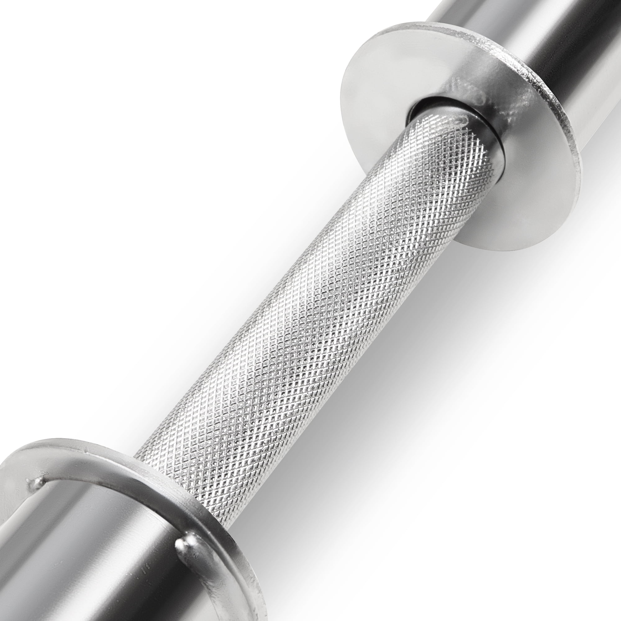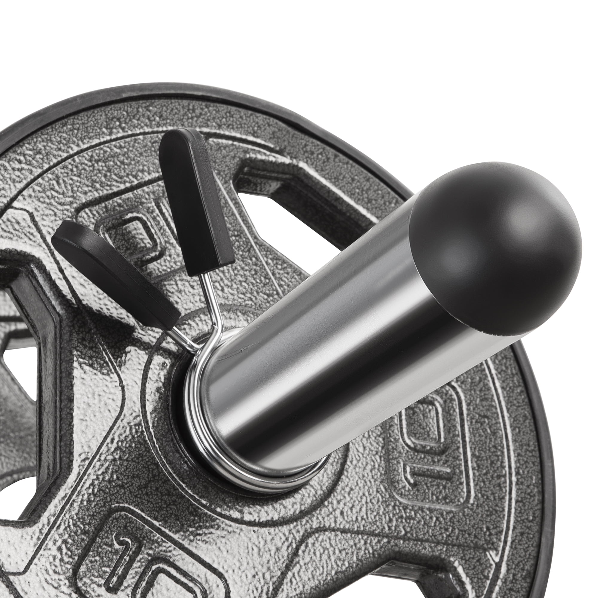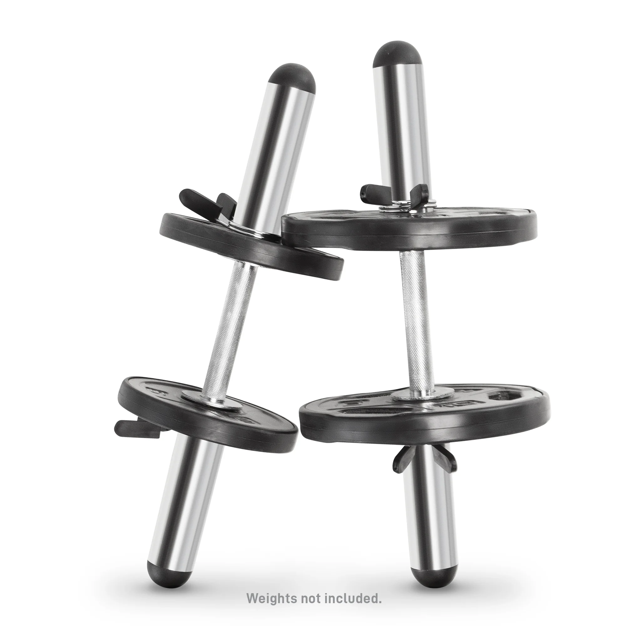 Olympic dumbbell handle and clip set Save money and space as you mix and match weight plates with handles Ergonomic curl bar design decreases elbow pressure while lifting Olympic clips ensure secure plate placement for worry free lifting No slip grips for comfort and stability Compatible with 2 inch weight plates Weights are not included 1, 47 inch Olympic curl bar 6, Olympic spring clips Color: Chrome