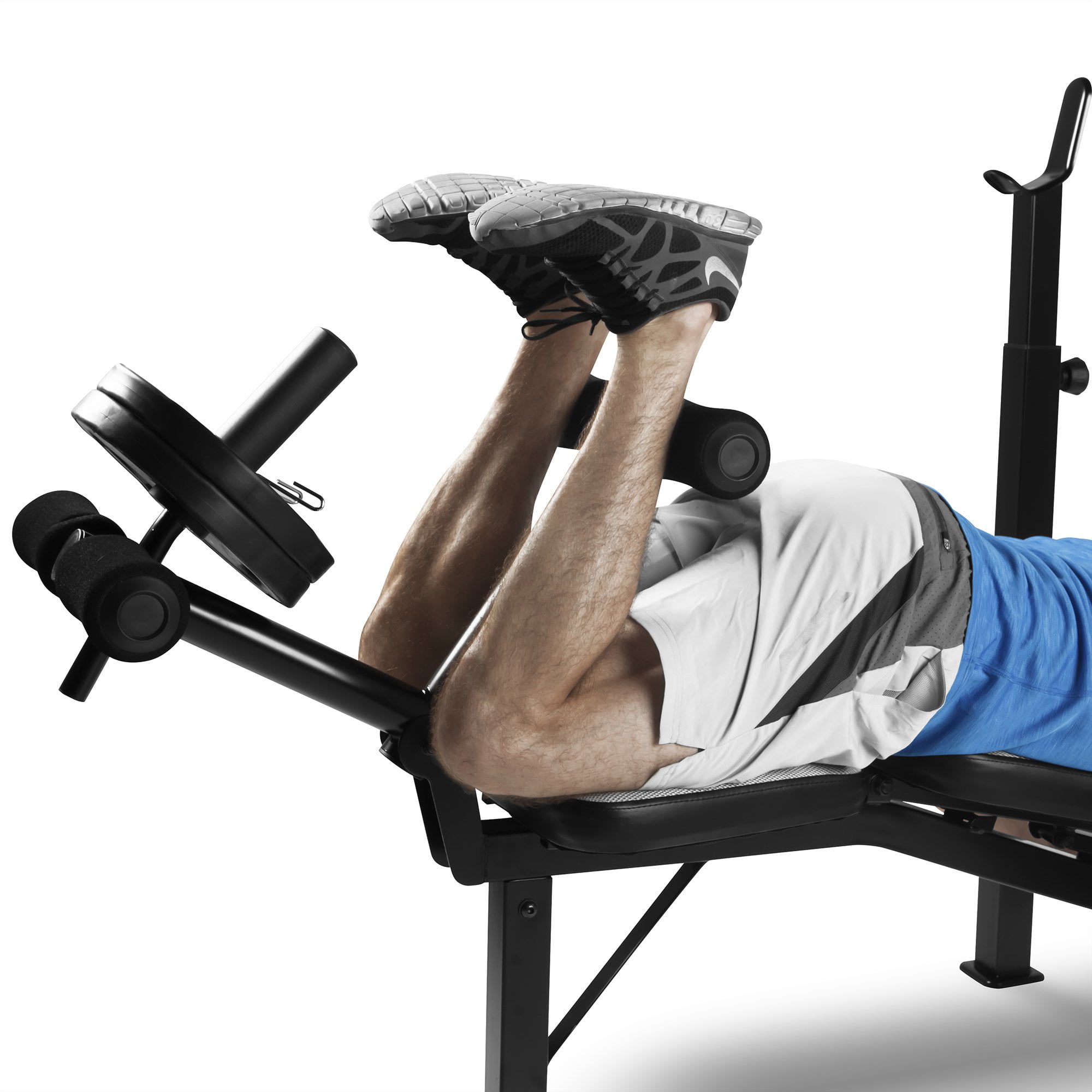 Achieve a total home workout without having to go to the gym Adjust the multi position back pad for chest press, incline press, decline press, and military press Dual function leg workout with contoured foam roller pads Features independent, height adjustable crutches with quick release pop pins 2.5 x 2.5 inch heavy duty, powder coated steel frame High density foam Weight capacity: 600 pounds Dimensions: 46 x 17.25 x 8.5 inches Weight: 61 pounds Manufacturer warranty: 2-year warranty