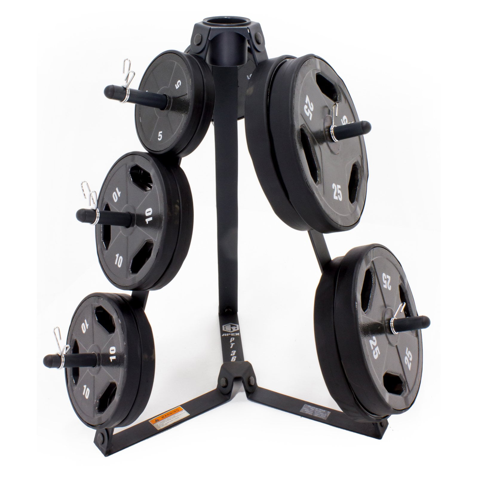 Marcy Standard Weight Plate Tree: PT-36: Durable, powder-coated finish 8 posts for storing standard 1″ weight plates Triangular configuration for stability Standard plate tree includes cup holder Organizes weight plates for efficient use Keeps weights neat and organized Durable powder coated finish Dimensions: 29.5″L x 29.5″W x 32.5″H