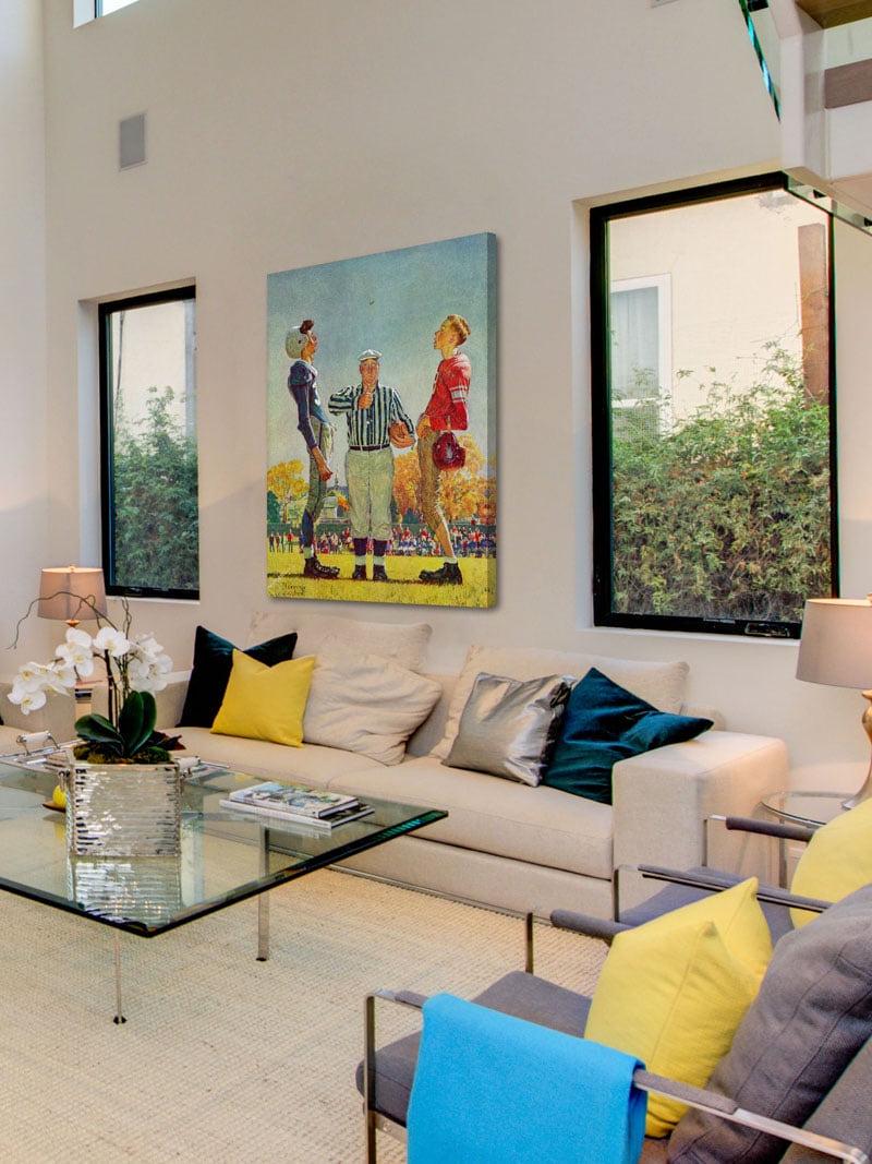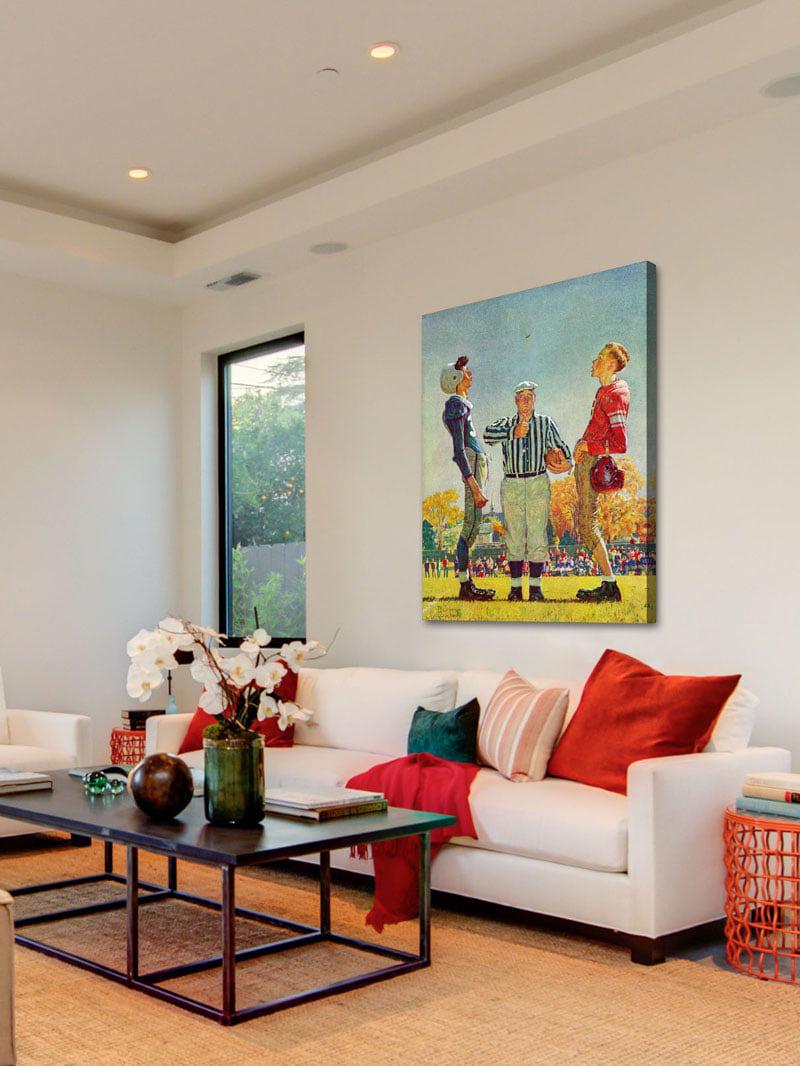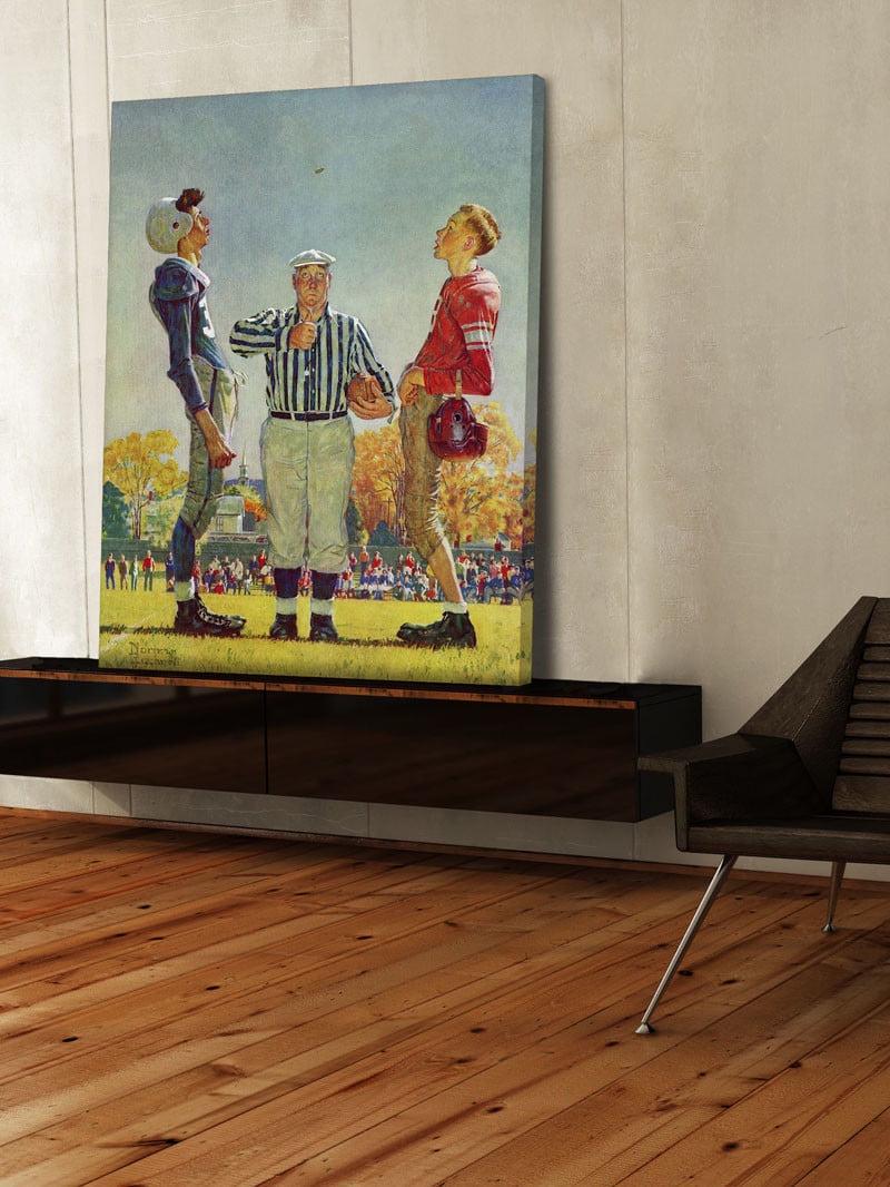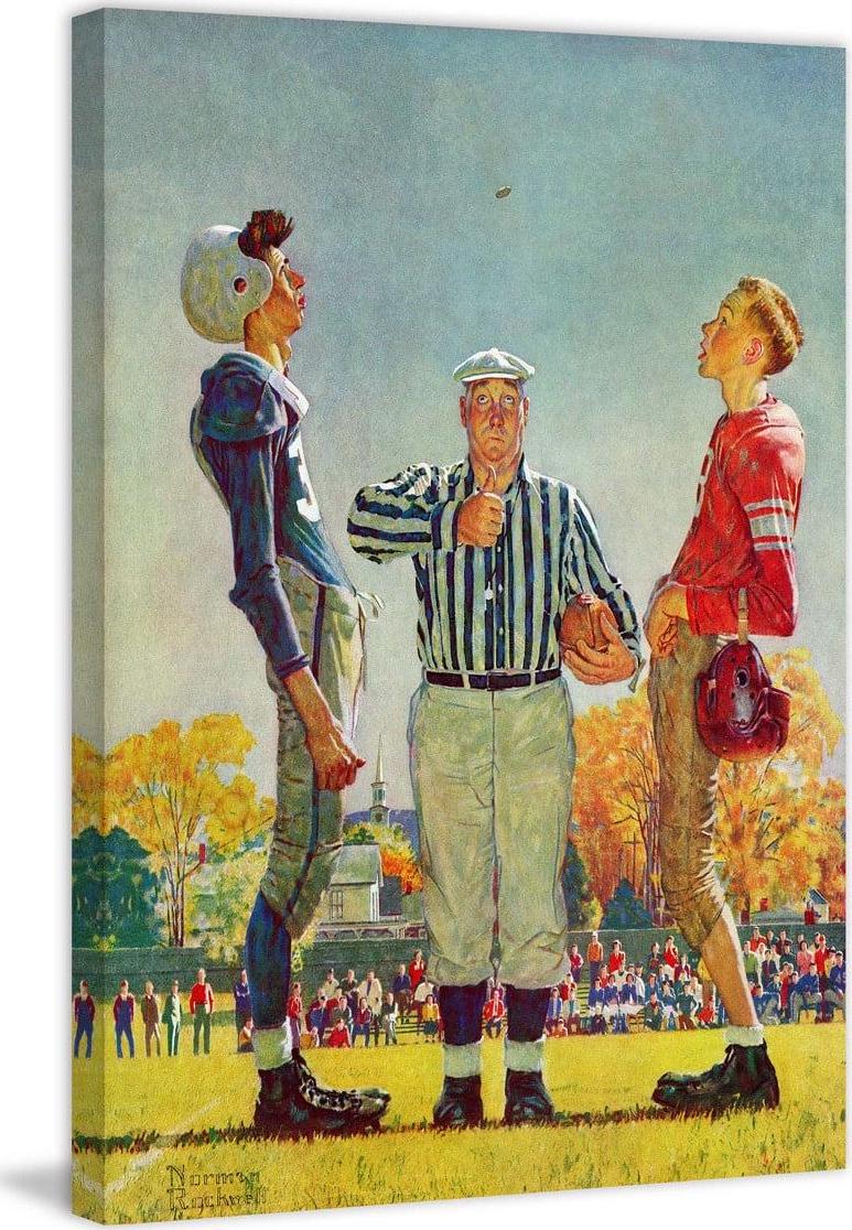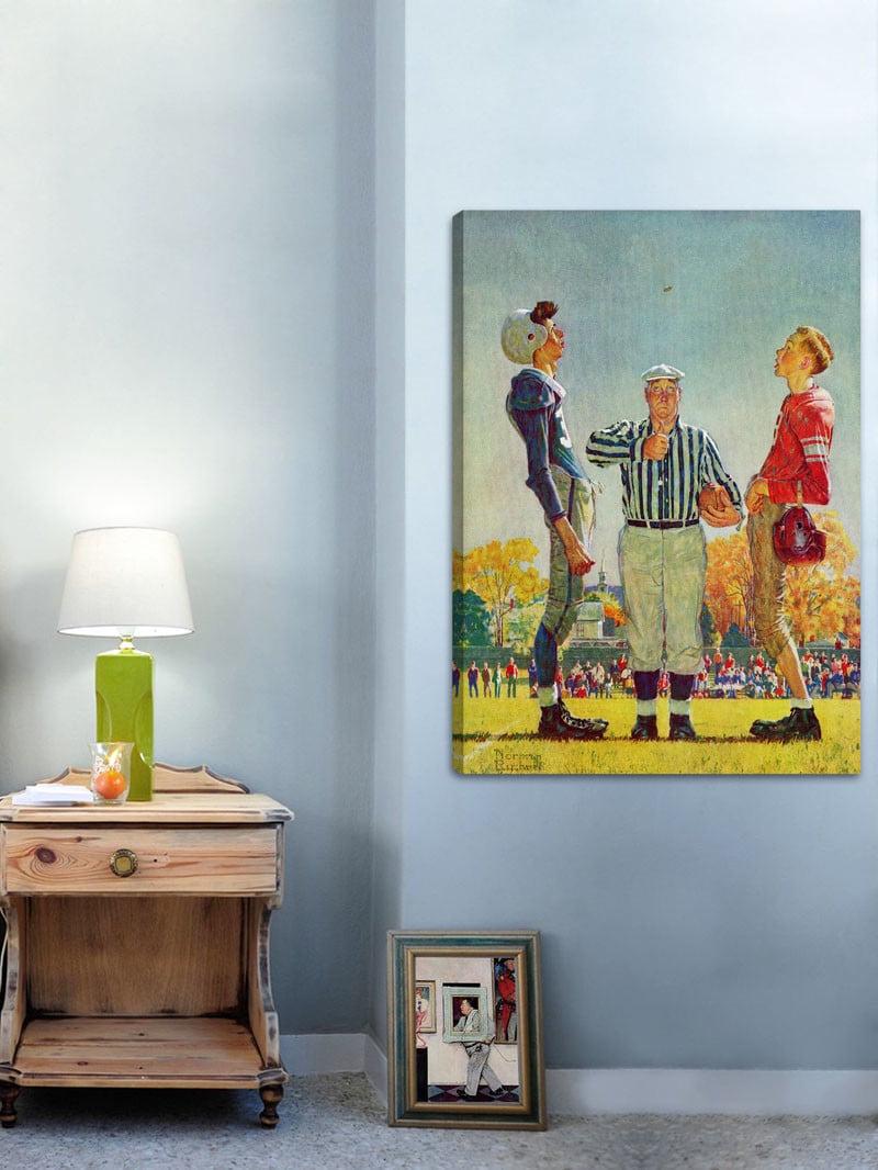 Make your décor a little more nostalgic by showcasing the Marmont Hill Coin Toss Wall Art by Norman Rockwell. This colorful, illustrative print on canvas is hand-stretched over a sustainable wood frame. Check out the available size options. It comes with a certificate of authenticity.