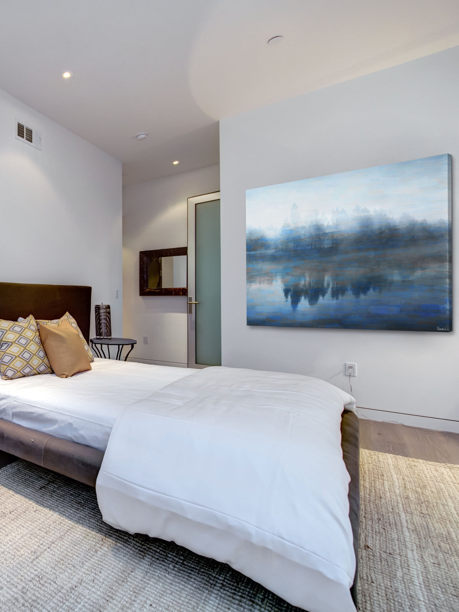Featuring lush woods and a vast blue lagoon, this painting print is the perfect way to show off your love for the beauty that nature has to offer. This print offers harmonious shades of indigo and ivory that flawlessly intermingle to create an awe-inspiring piece. This piece is printed on canvas before it’s stretched over non-warping wooden bars for a gallery-wrapped look. With wall-mounting hooks included, this artful accent is ready to hang up as soon as it reaches your front door.