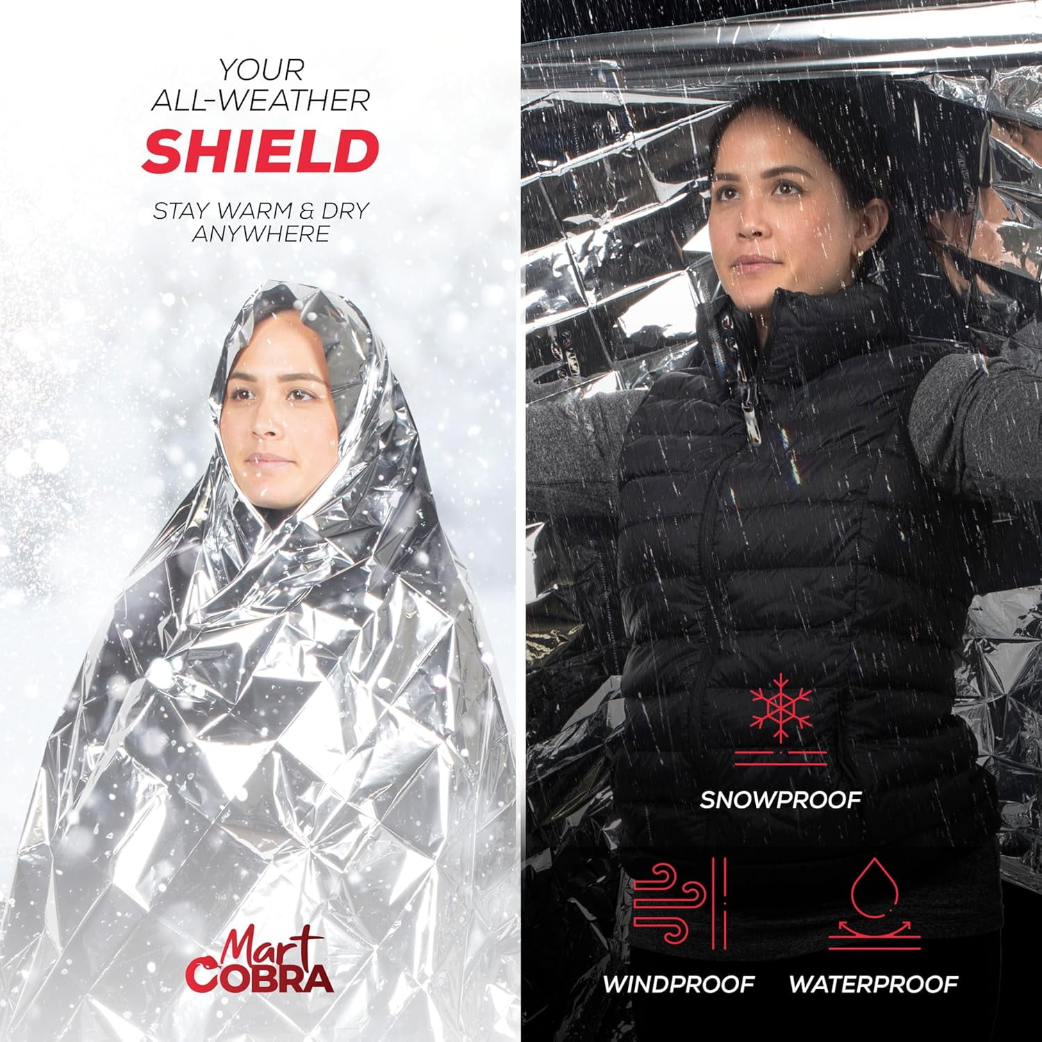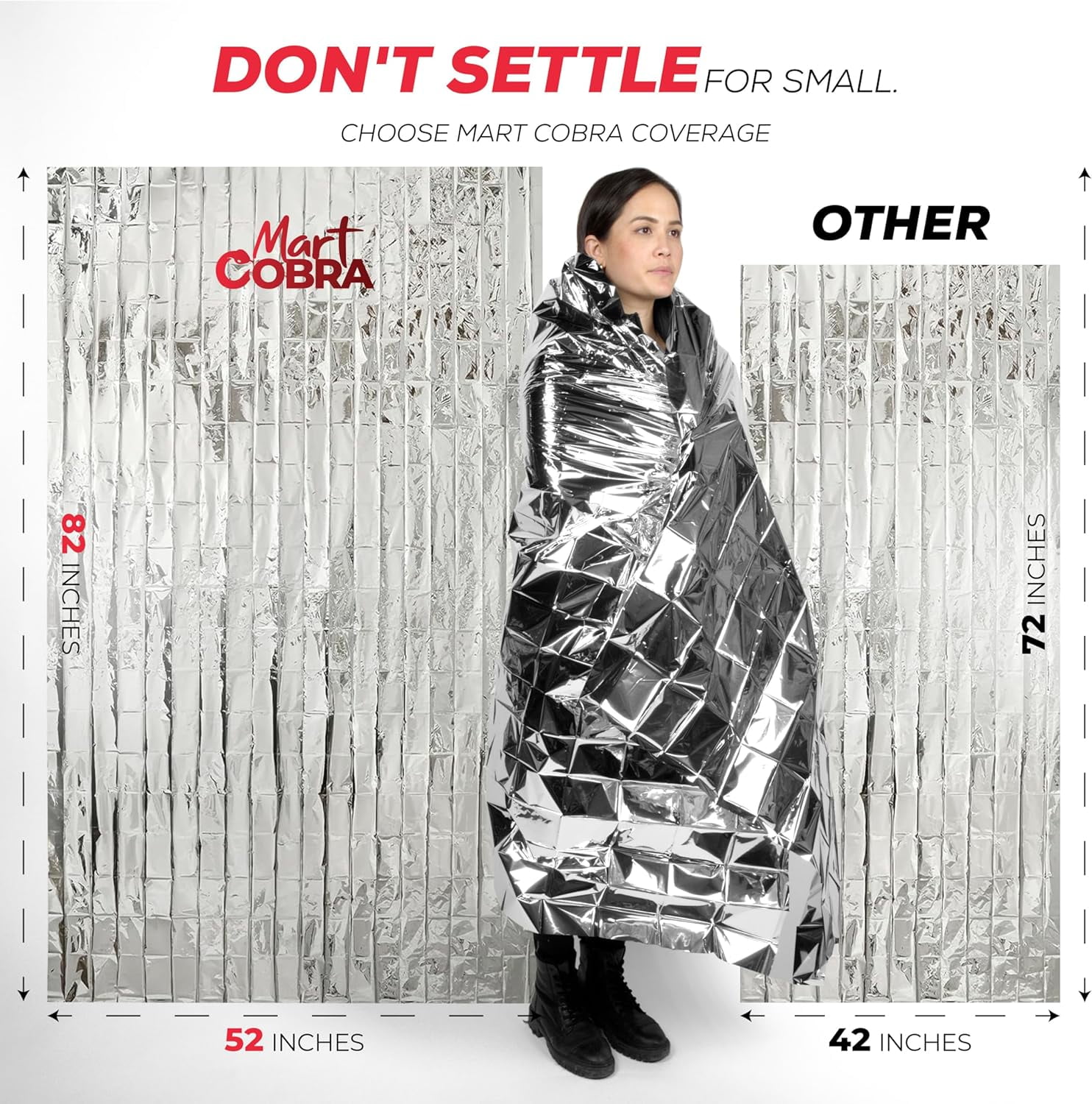 Mart Cobra Emergency Blankets x100 – Mylar Thermal Space Blanket for Survival Gear, Camping Shelter, Emergency Kit & Supplies – Foil Survival Blanket for Outdoors