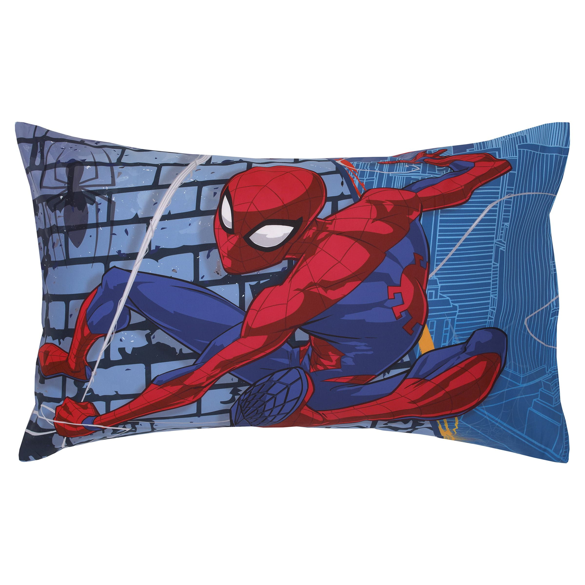 Spider-Man Wall Crawler 4 Piece Toddler Bed Set includes a comforter, fitted bottom sheet, flat top sheet, and reversible pillowcase Fits a standard size crib/toddler mattress that measures 28″ x 52″ Includes everything you’ll need for a coordinated look