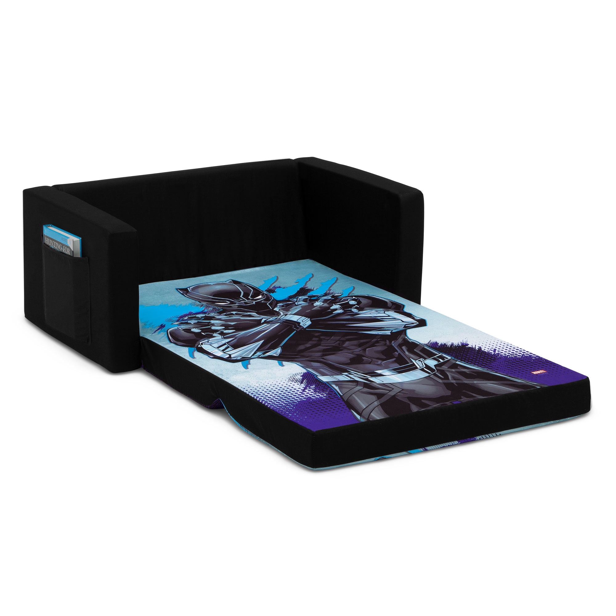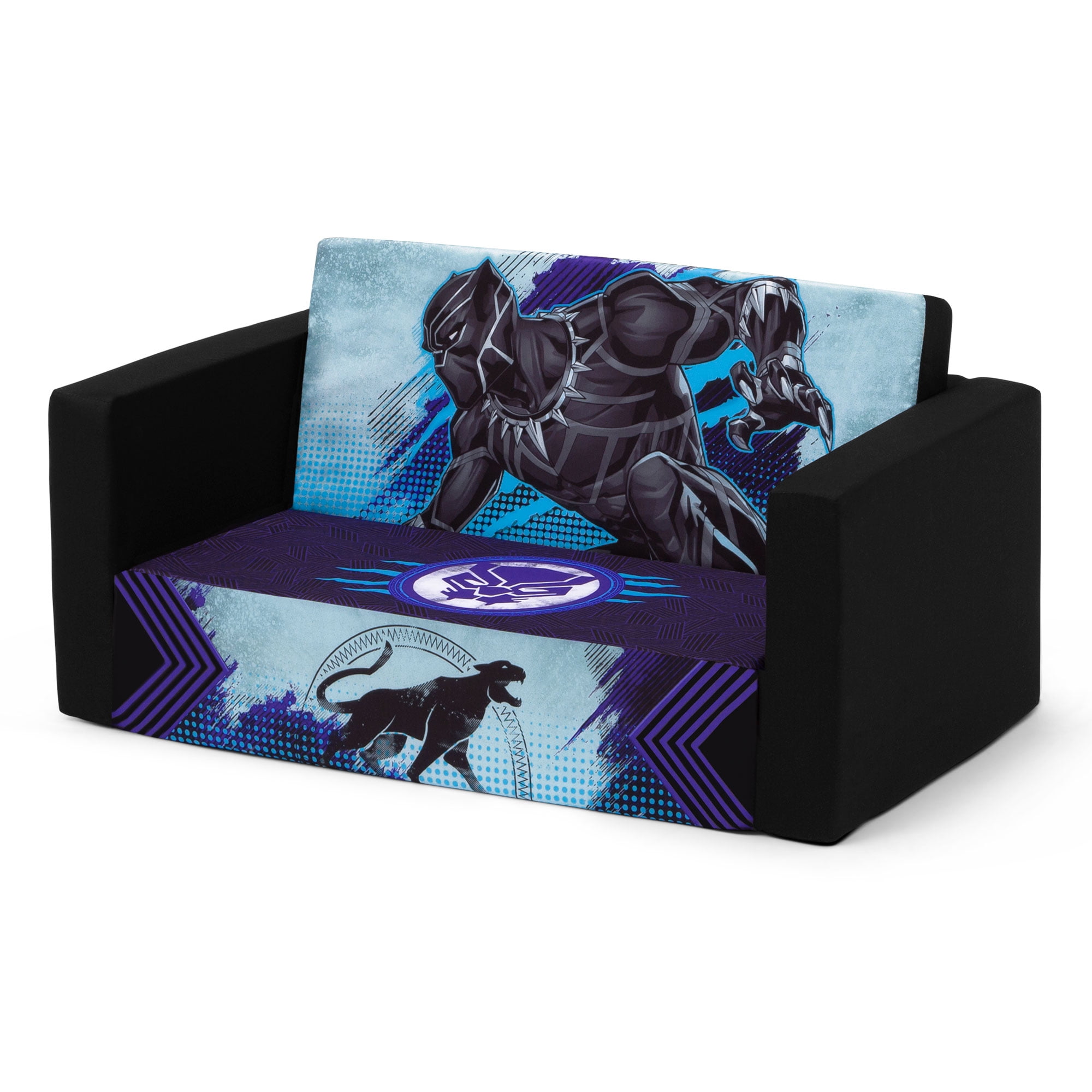 Marvel Black Panther Cozee Flip-Out Sofa with Memory Foam – 2-in-1 Convertible Sofa to Lounger by Delta Children, Black