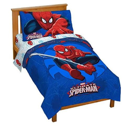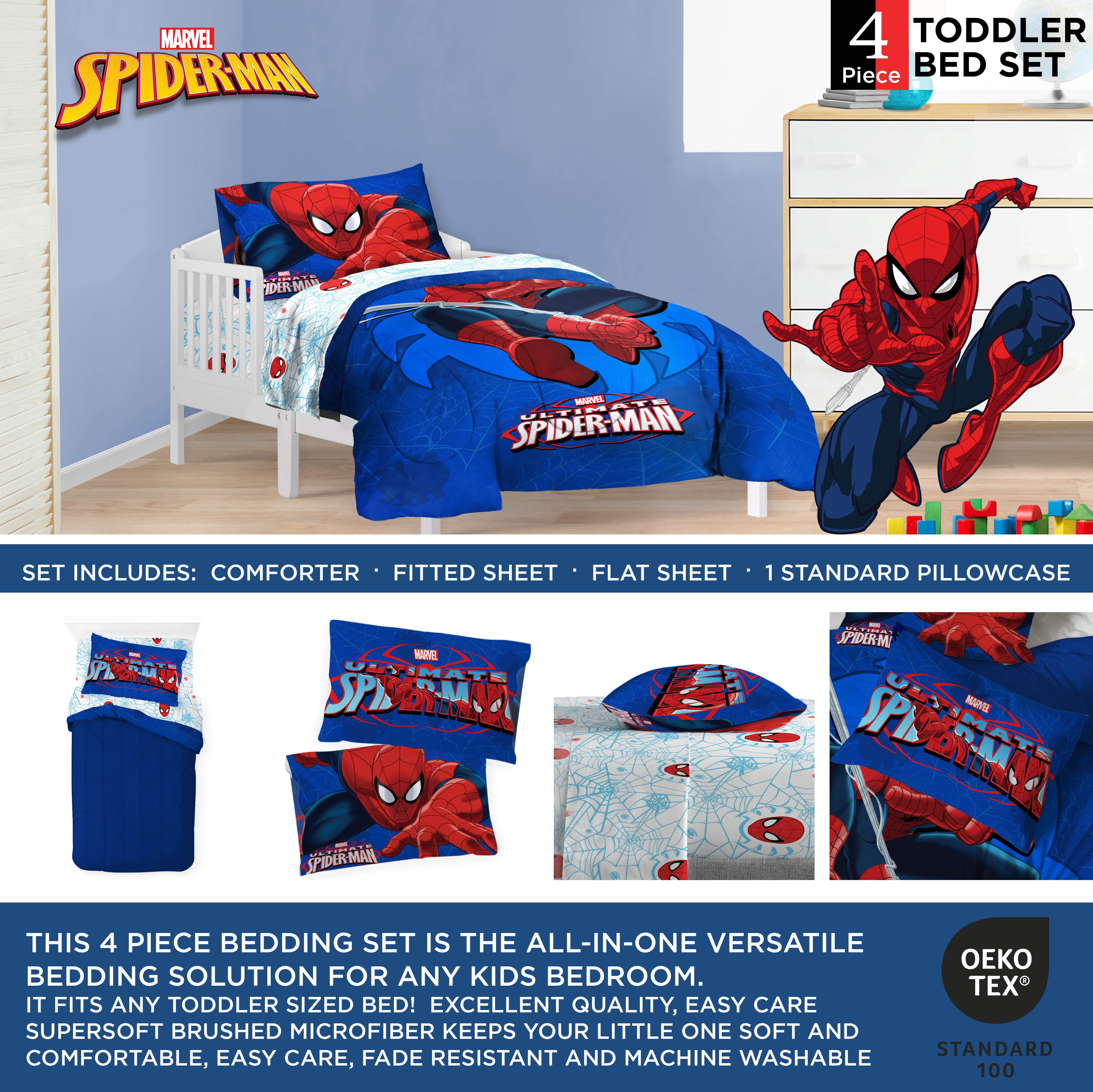 Our Spidey-Senses are telling us that your little one will have a great nights sleep with this Spiderman Regulator toddler bed set. This soft and cozy four piece bed set includes one quilted bedspread, one flat sheet, one fitted sheet, and one pillow case. Specially sized to fit a crib or toddler mattress, this bed set is made from a soft microfiber and is machine washable.
